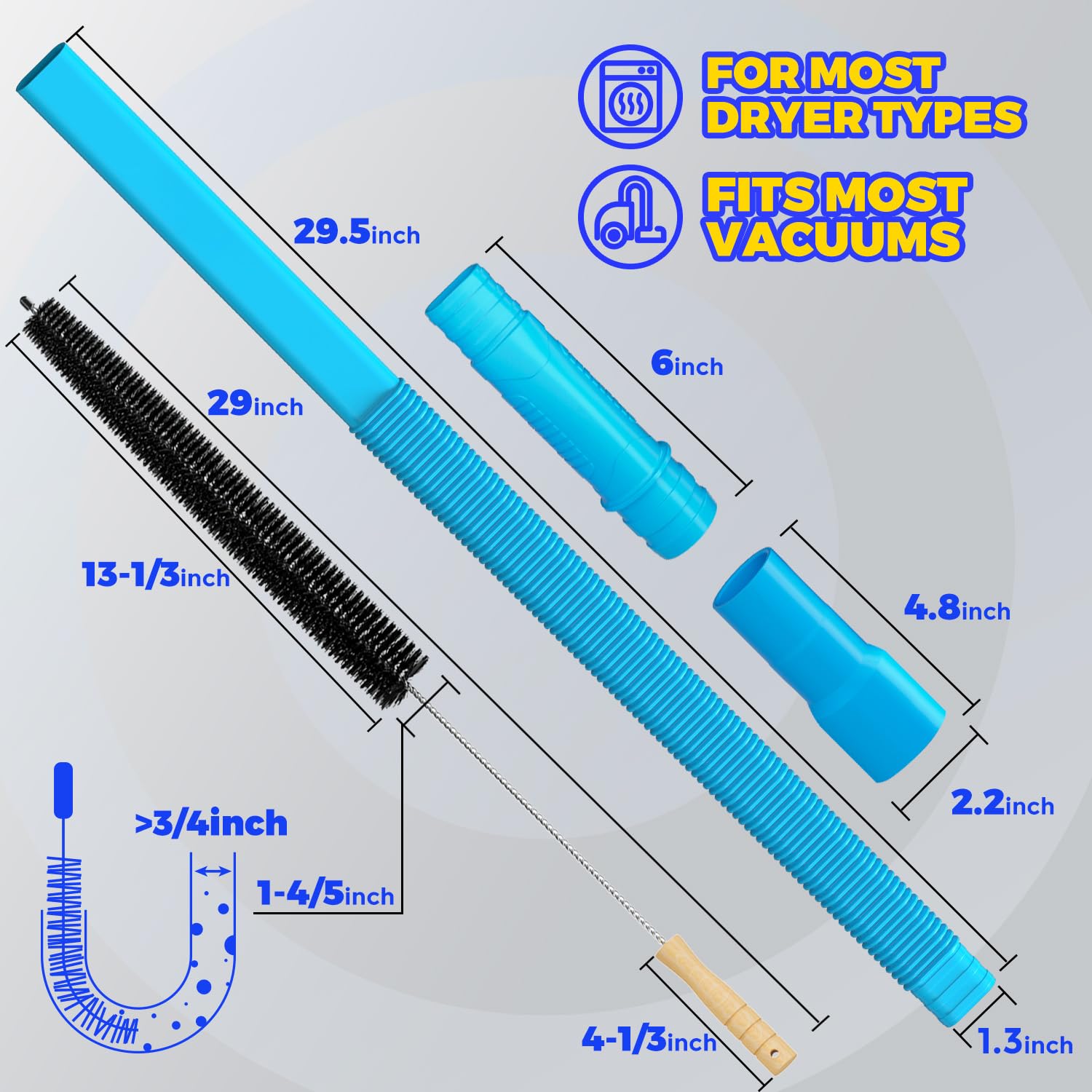 Holikme 2 Pieces Dryer Vent Cleaner Kit, Dryer Lint Vacuum Attachment and Flexible Dryer Lint Brush, Lint Remover, Dryer Vent Vacuum Hose Replacement Parts, Blue