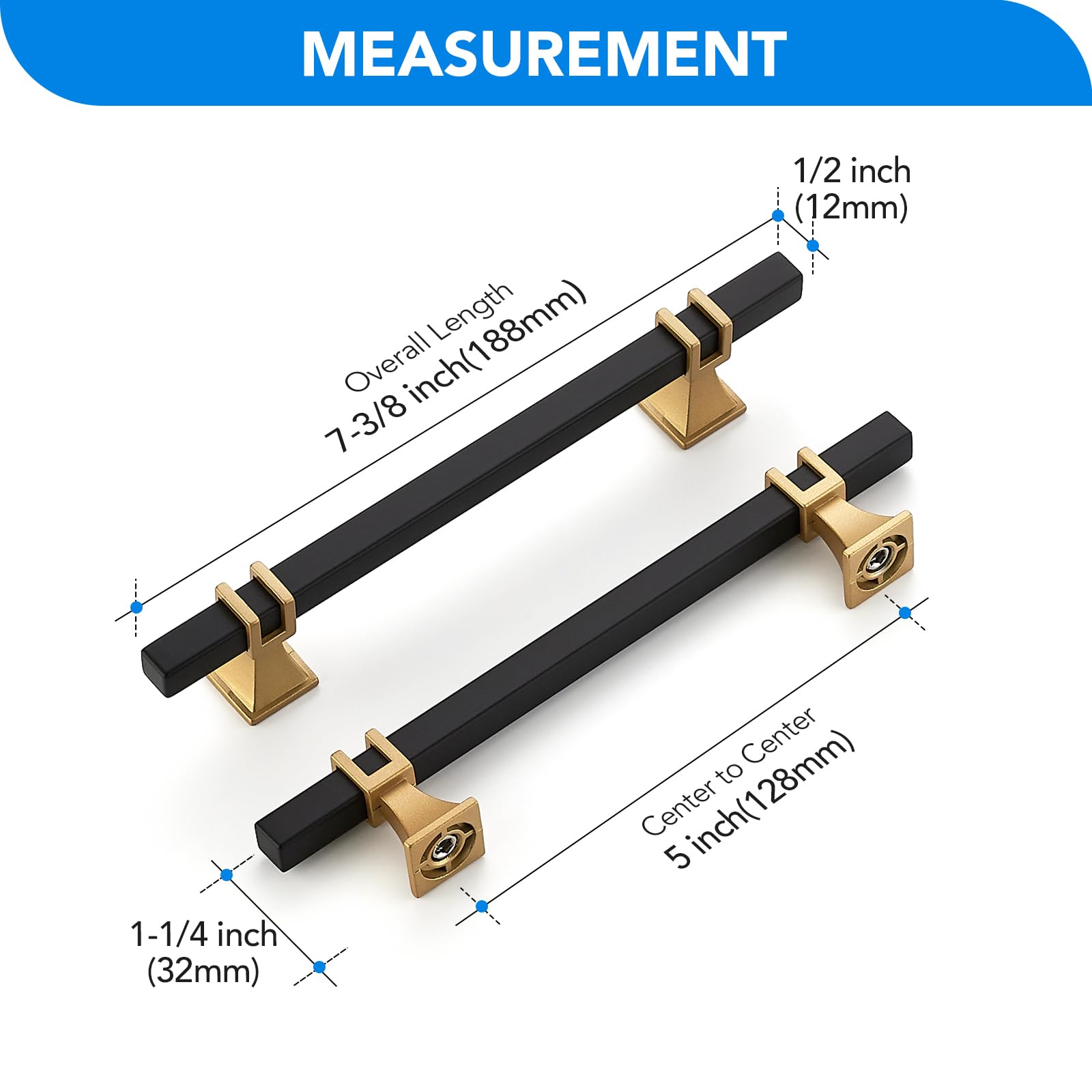 - Package Includes:Black & Gold cabinet handle made from a stainless steel square tube with a sturdy zinc-alloy base, featuring corrosion-resistant electroplating. Each handle comes with two screw sizes (1 inch & 1.75 inches) for easy installation.