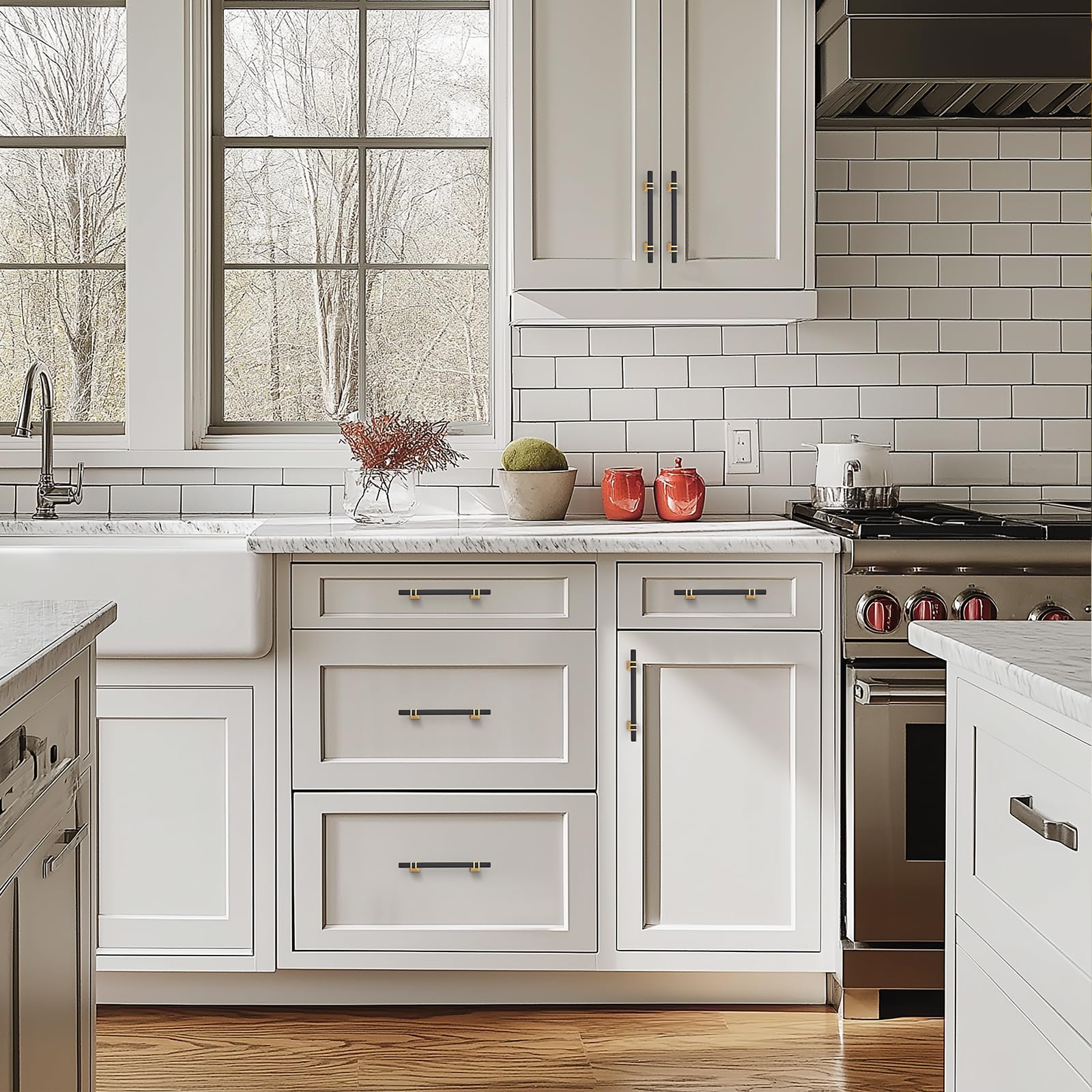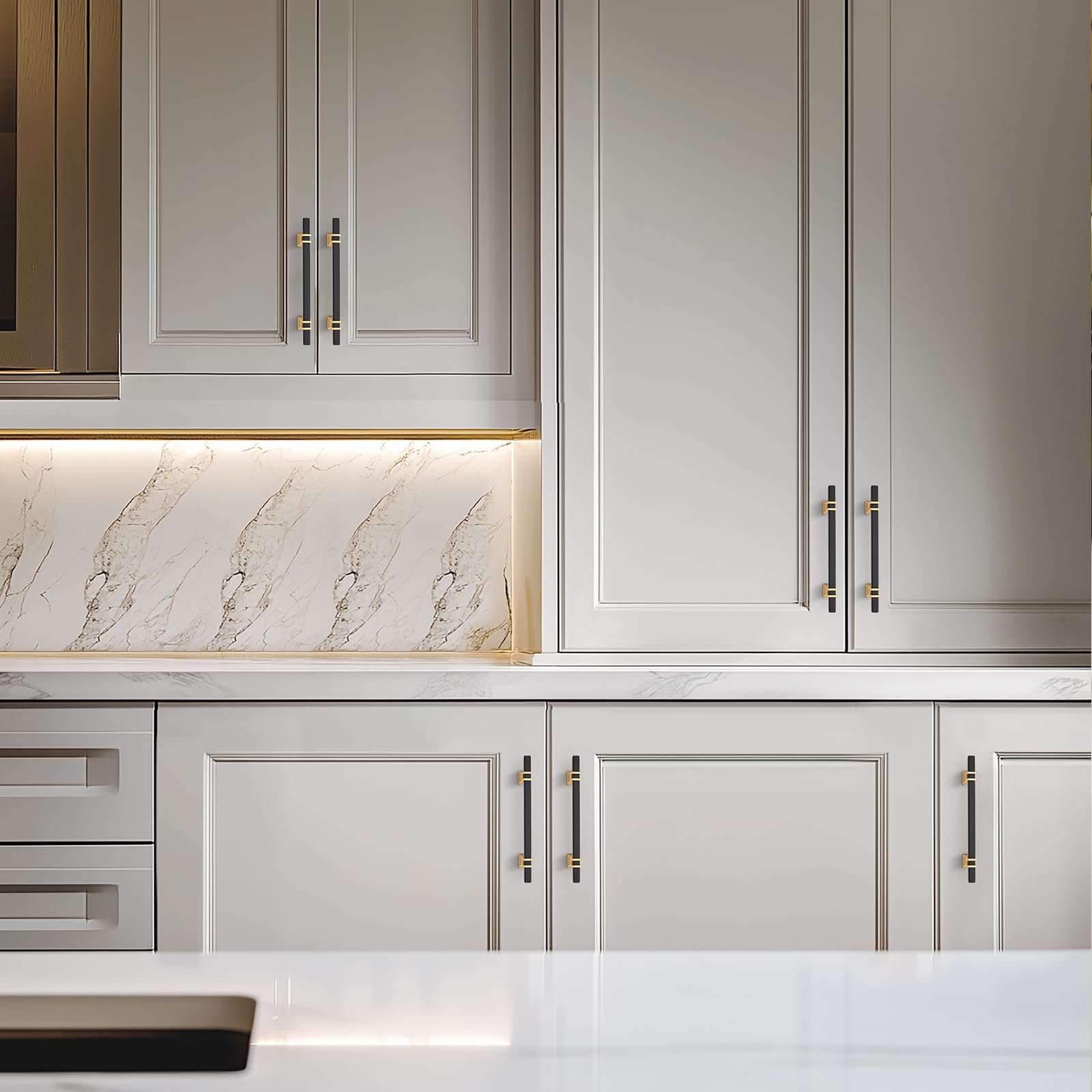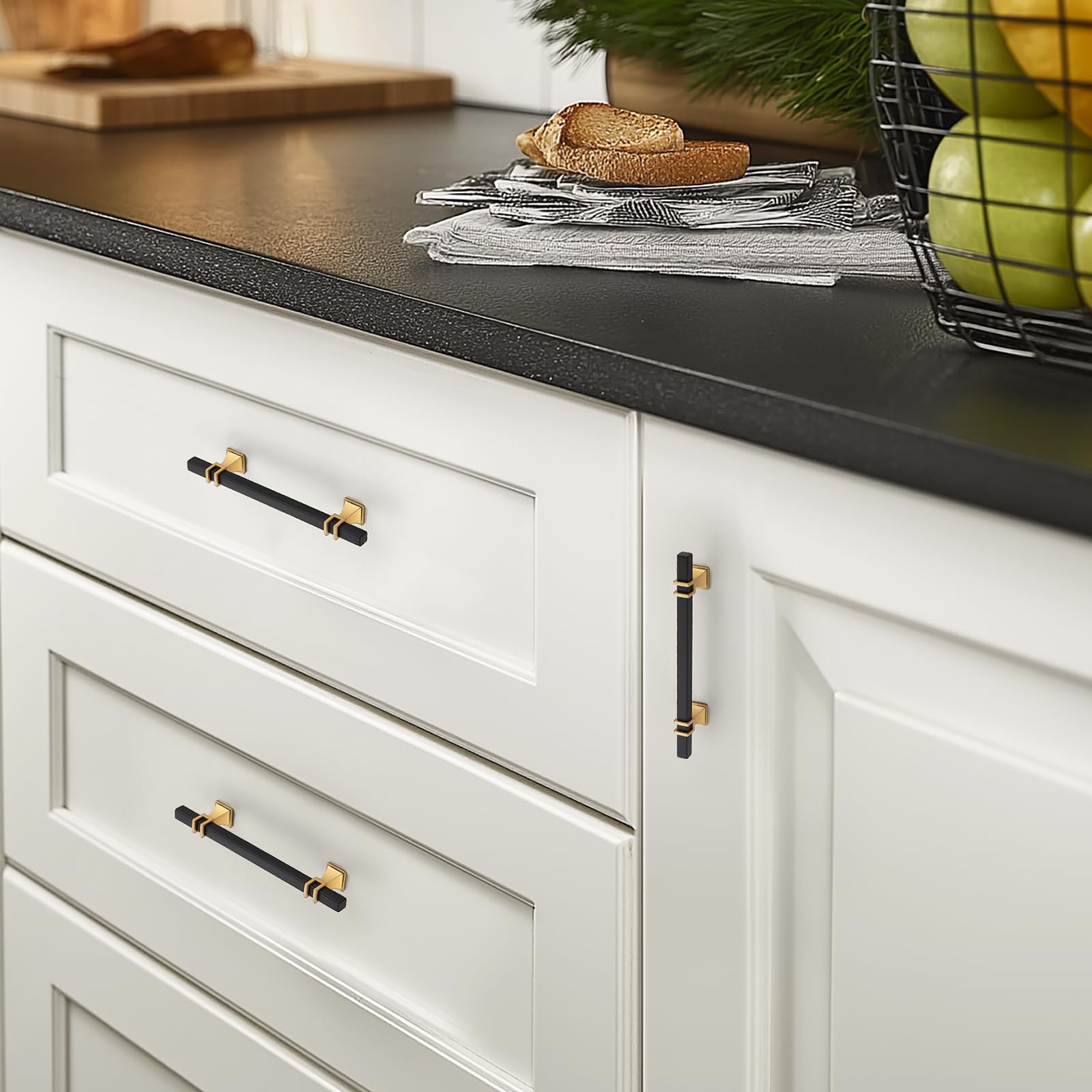 - Widely Compatible:Modern Black and Gold handles are suitable for kitchen cabinets, cupboards, dressers, closets, wardrobes, and wooden furniture. They resist corrosion, wear, fading, and rust