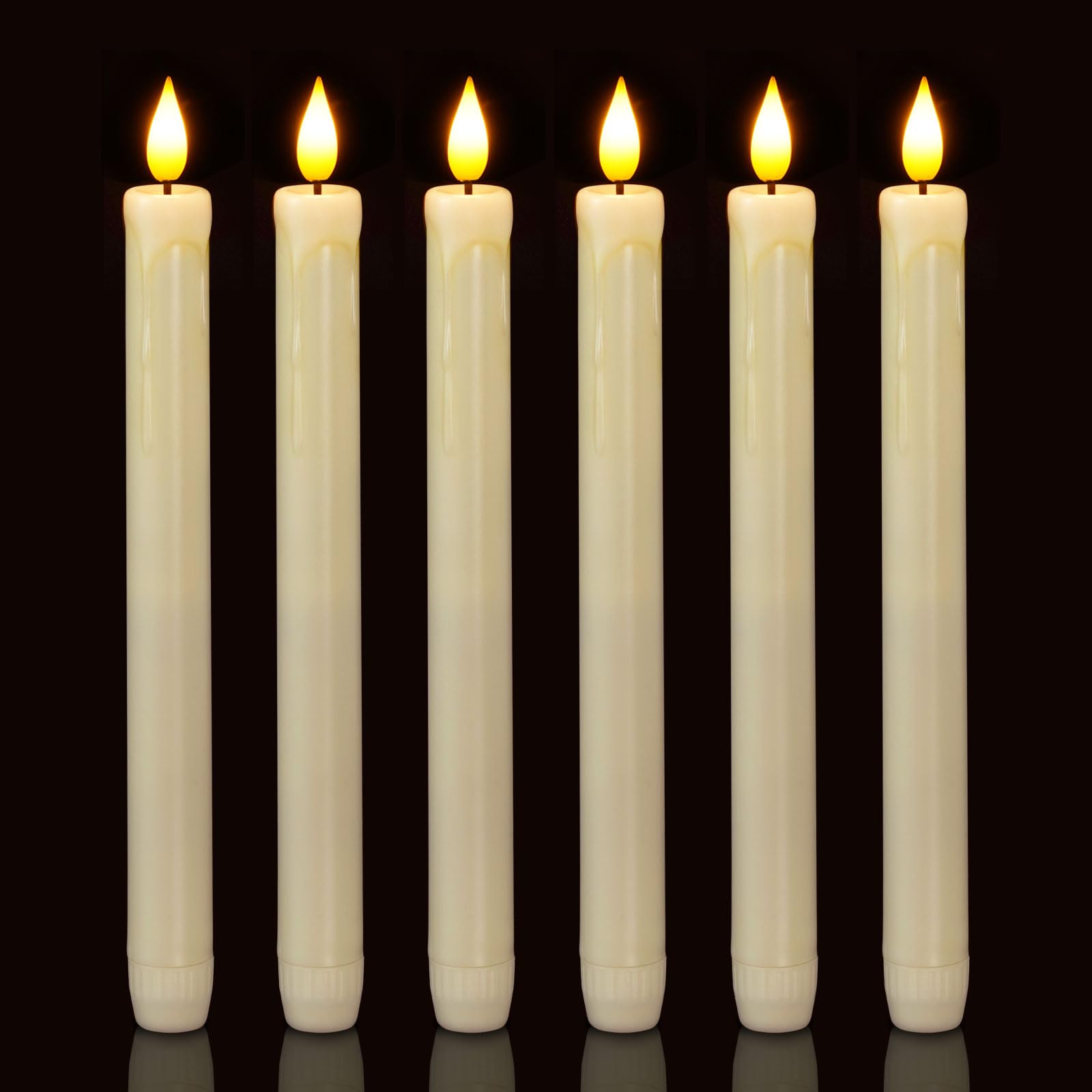 Homemory 6 Pack Flameless Taper Candles, No Remote, Realistic Flickering Battery Operated Candlesticks, Ivory LED Plastic Candle Safe for Weddings, Table Decor, Christmas, and Halloween