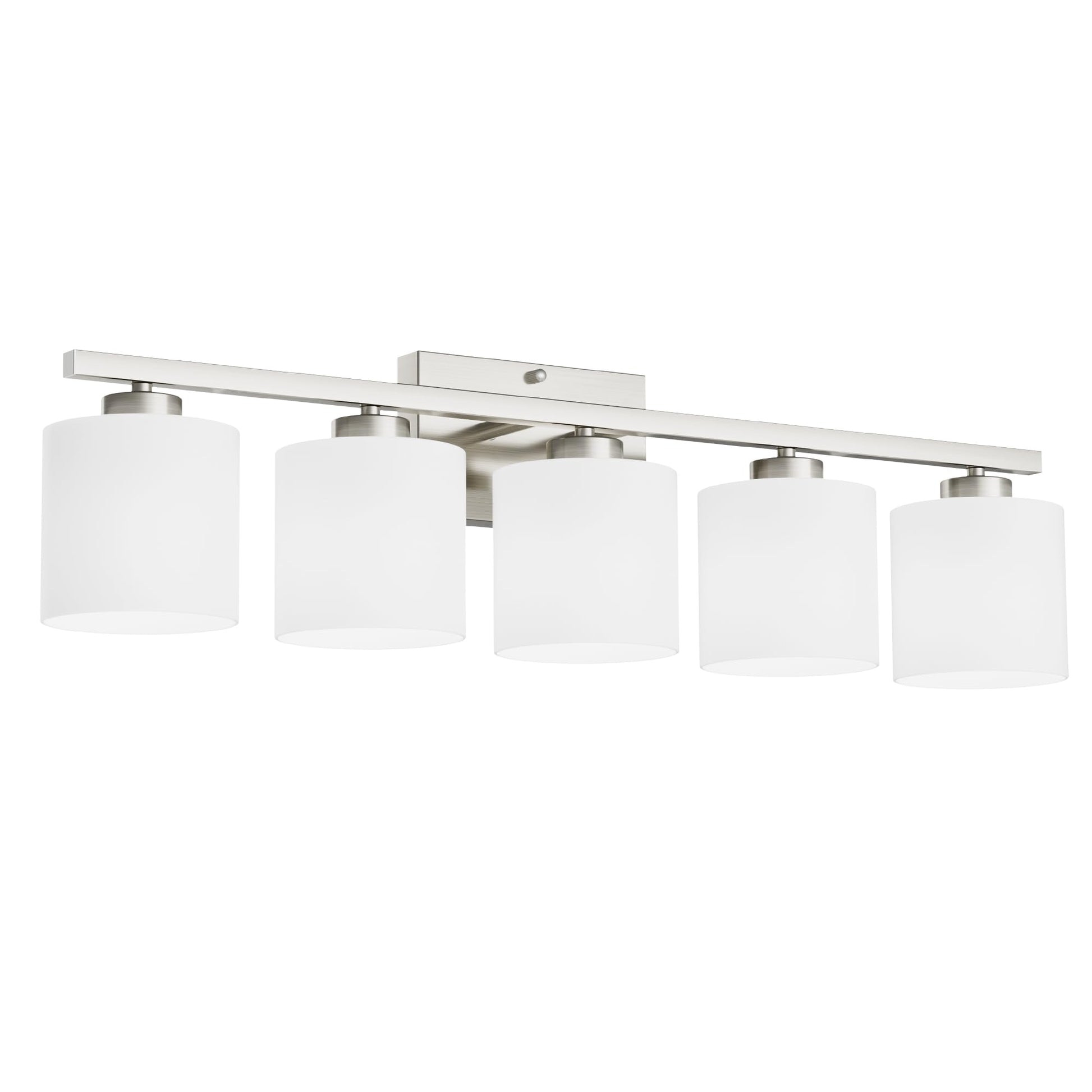 Honesorn Modern Vanity Lights - 5-Light Bathroom Fixture with Frosted Shade & Anti-Rust Nickel Finish