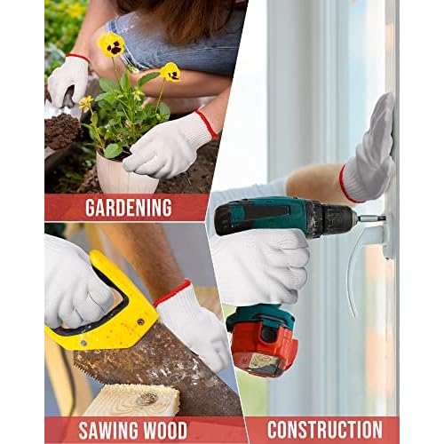 Honeydak 96 Pairs White Cotton Hand Gloves, Cotton Safety Liner Gloves Grip Knit Gloves for Men, Women, BBQ, Hand Repair, Painter Mechanic Warehouse Gardening