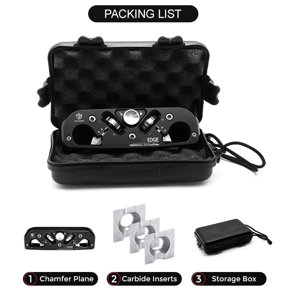 - 【12 Cutter Heads】HONGDUI Innovative Chamfer: 3 carbide inserts (4 sides each: 2 right angles + 2 arcs), for cuts down on frequent cutter replacements. Includes 2 pre-installed inserts,1 spare and built-in storage slot.