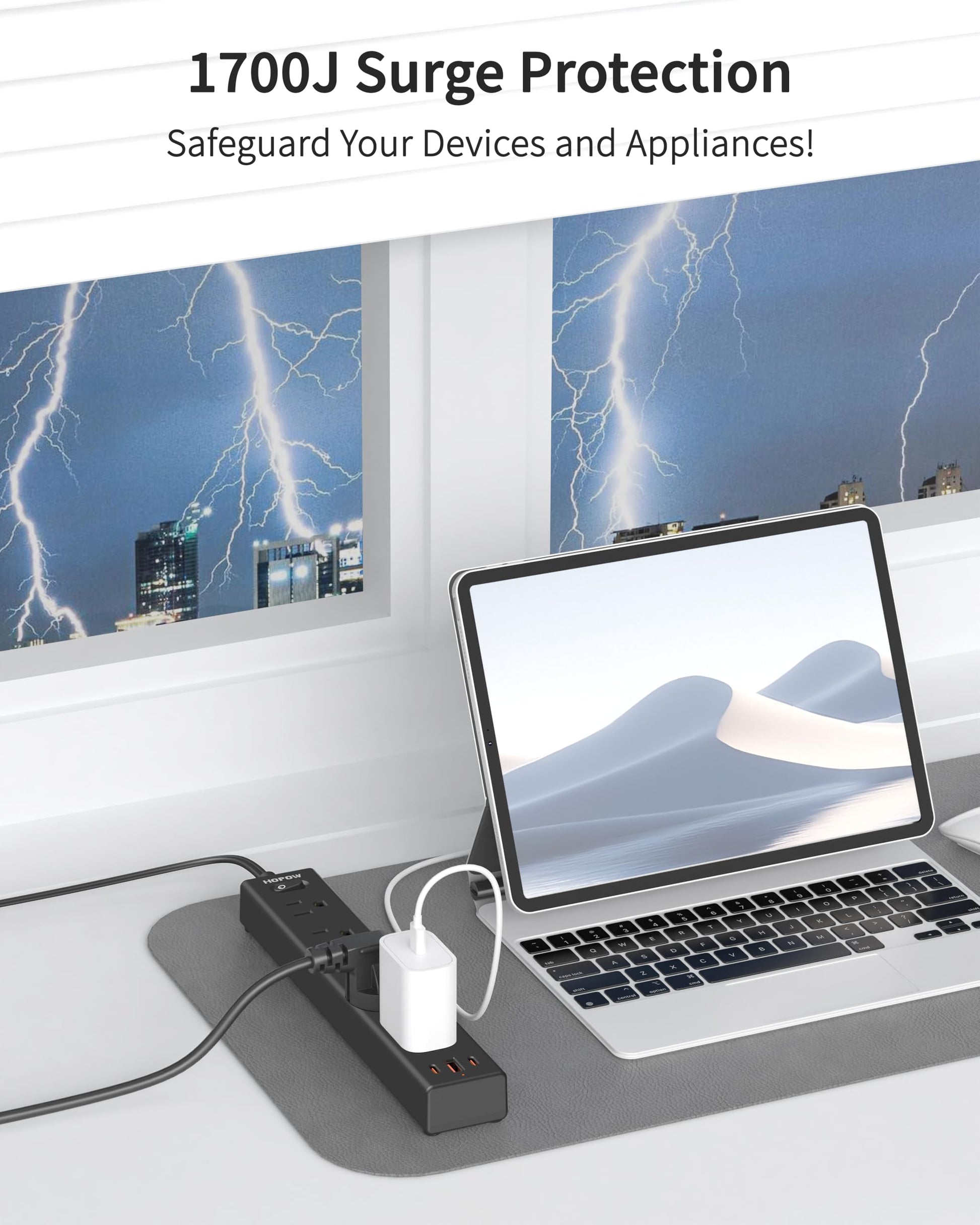 - 【2 to 3 Prong Outlet Adapter with Surge Protection】This 2 prong surge protector features a rated surge protection energy capacity of 1700 Joules, making it a dependable choice for protecting devices during thunderstorms. Equipped with a 10A overload protection switch, two prong power strip automatically cuts off power when the load exceeds 1250W, ensuring equipment safety while eliminating concerns about risks associated with forgetting to unplug devices.