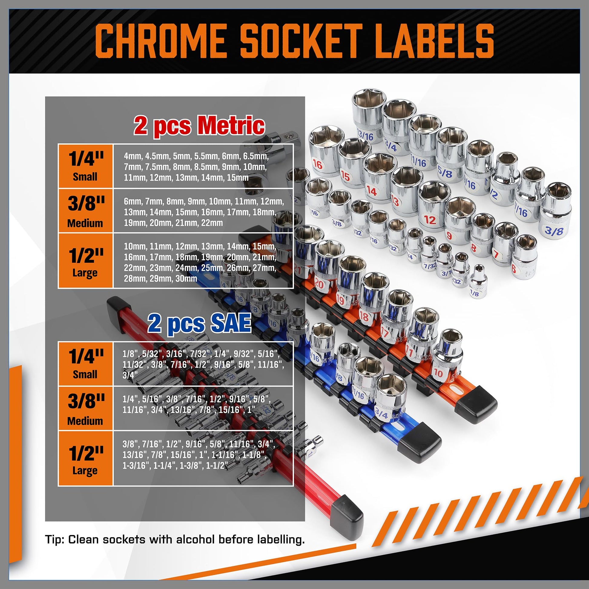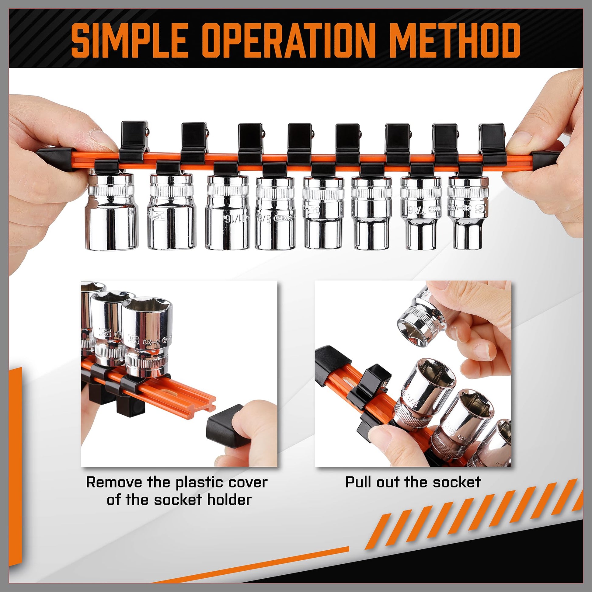 HORUSDY 6Pcs Double Sided Socket Organizer, 1/4-Inch, 3/8-Inch, 1/2-Inch, Premium Quality Socket Holders (6Pcs Double Sided Socket Organizer)