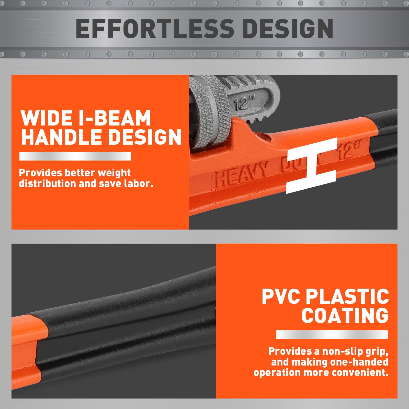 - [DURABLE CONSTRUCTION] This pipe wrench is crafted from high-quality materials. Whether you’re a pro or DIYer, this heavy-duty plumbers wrench ensures long-term durability and reliable performance on every job