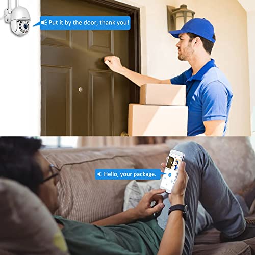 - ¡¼Spotlight & Alarm Siren¡½The spotlight of this outdoor security camera can be set to turn on when the moving objects detected in the darkness, you can also set sound alarm to make loud siren when the moving object is detected, the built-in advanced microphone & speaker allows you scare away uninvited guests,send commands to pets, say hello to welcome guests.
