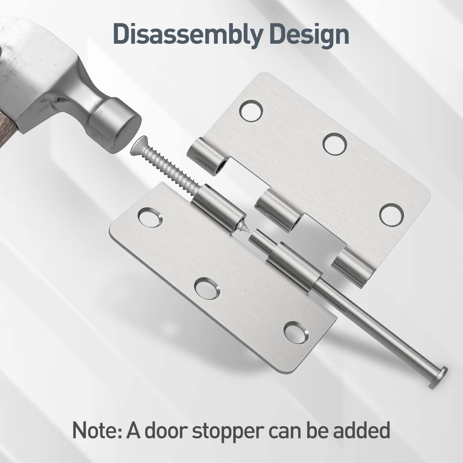 - 【Removable Pin】 Detachable pin design allows installation of a door stopper instead and easy removal of a door for cleaning or painting without unscrewing the entire hinge