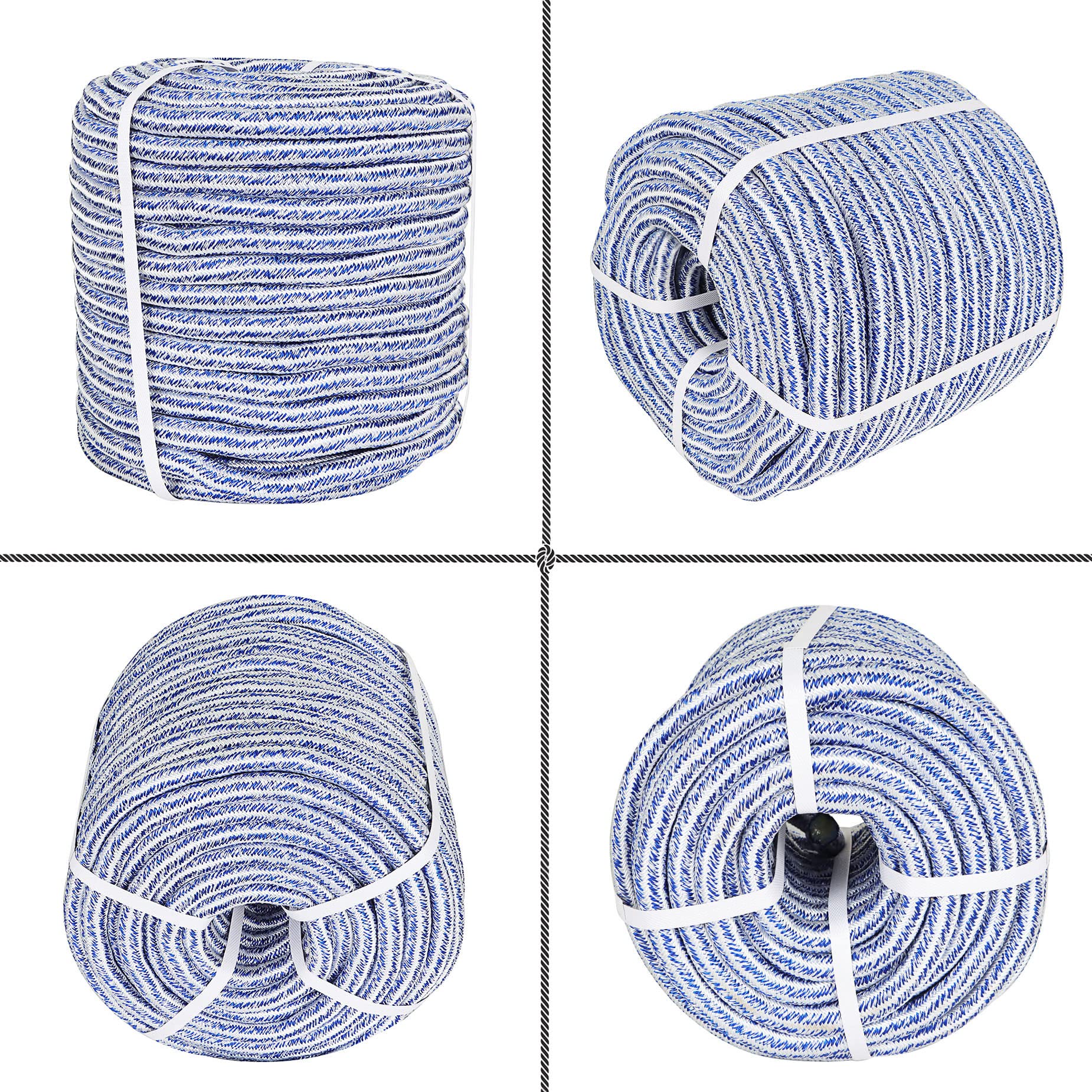 - Product size - Diameter: 3/4 inch, length: 150 feet. Tensile strength: 20000 pounds, color: blue white.