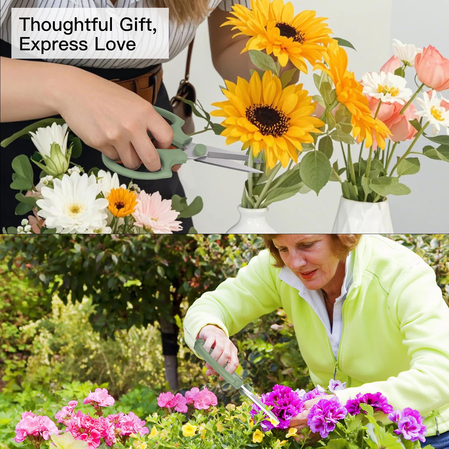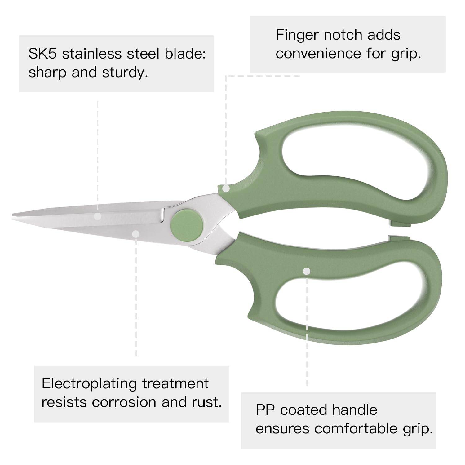 Housolution Flower Scissors, Strong Floral Shears,3PCS Premium Steel Garden Pruning Shears Floral Fruits Leaf Scissors Hand Pruner Snip Trimming Tool for Gardening Flower Arrangement, Green