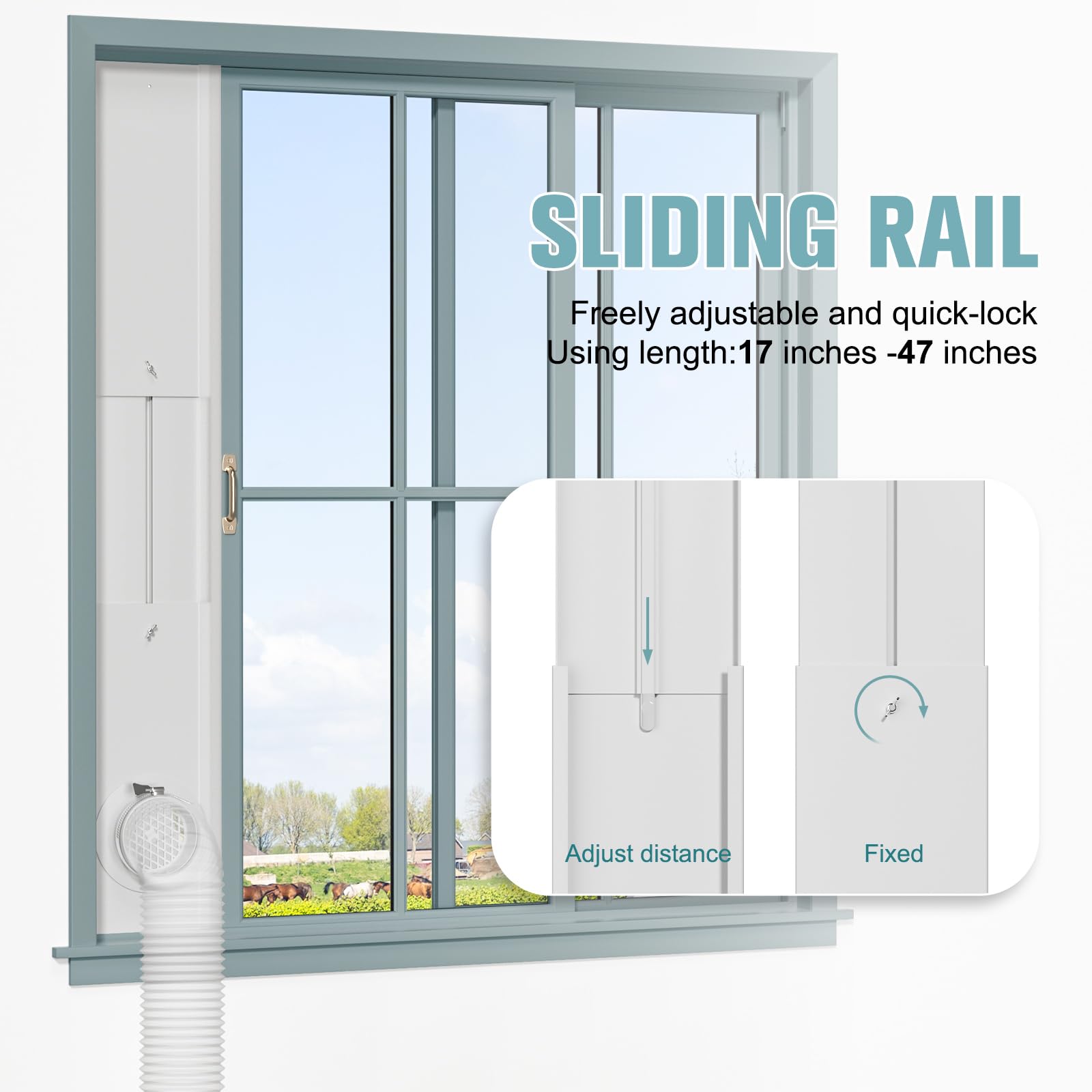 - VERTICAL & HORIZONTAL USE: HOXHA window dryer vent kit suitable for most vertical and horizontal sliding window. You can make different combination according to the size of the window: use a 2-plates or 3-plates combination. No tools required. Adjustable length range: 17 inch or 25 inch to 47 inches. Plase check before you buy.