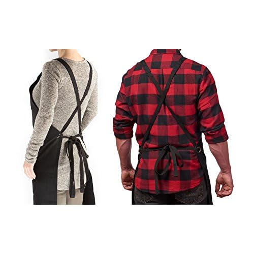 Hudson Durable Goods Heavy Duty Waxed Canvas Apron for Men and Women, Adjustable Crossback Work Apron with Tool Pockets, Water-Resistant - Fits up to XXL, Black
