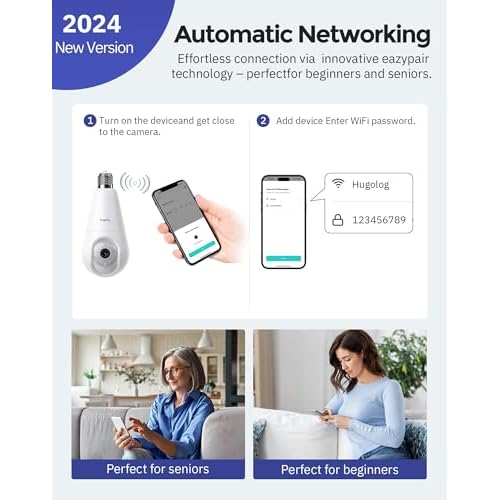 - Automatic Networking & Easy Pairing Connection: The light bulb camera is a breeze to install; simply plug it into an E27 socket and pair via Bluetooth and Wi-Fi through the app; no extra tools needed for a hassle-free setup