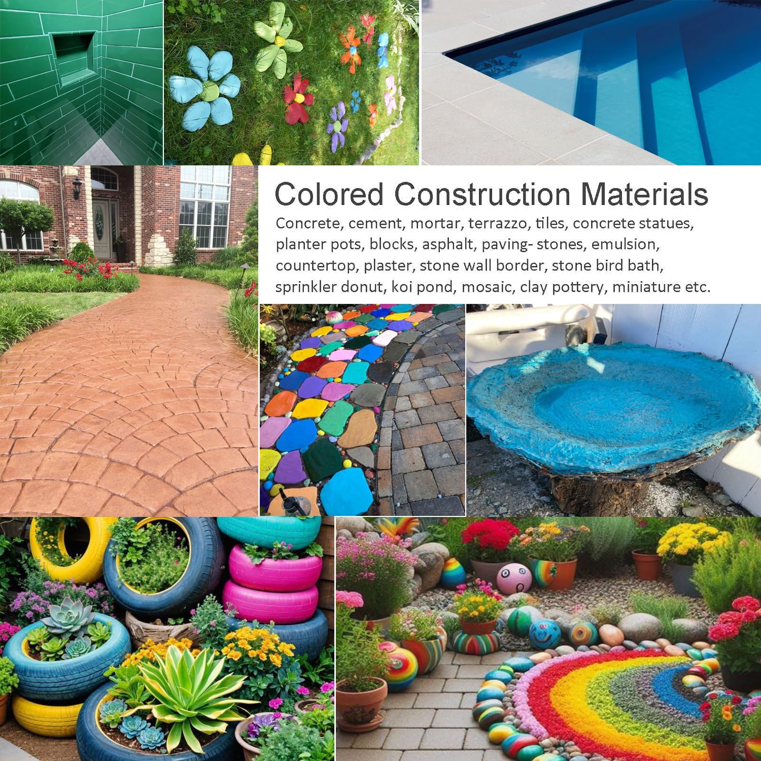 - Concrete Dye Powder Characteristics: Our concrete color pigment is waterproof, sunscreen, alkali resistance, acid resistance, easy to color, super hiding power.