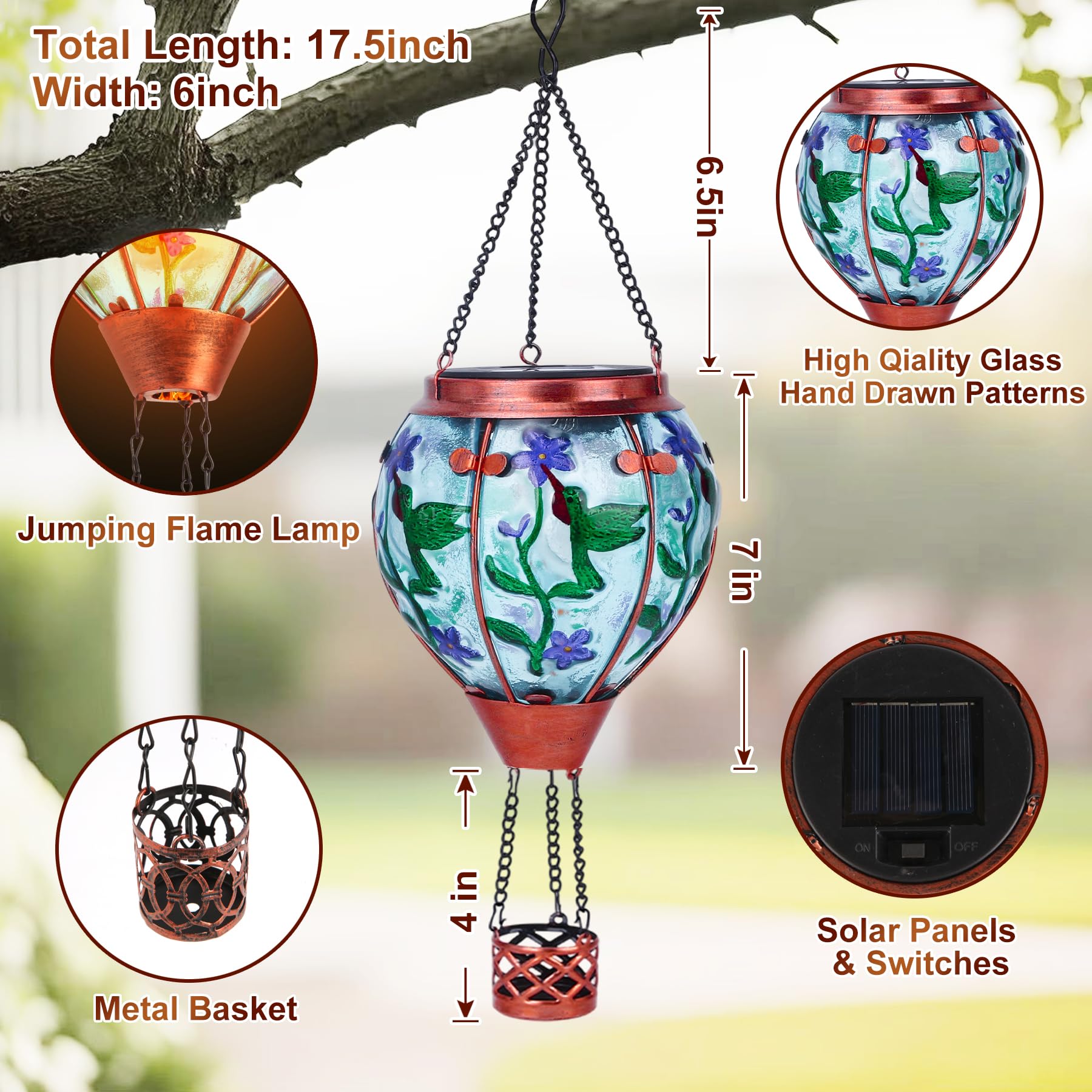 - 【Perfect Presents for Gardeners】 - Hummingbirds symbolize good fortune, wisdom, and love. This solar-powered hummingbird hanging Hot Air Balloon is an ideal gift for multiple occasions like Mother's Day, Father's Day, Thanksgiving, Christmas, Valentine's Day, birthdays, weddings, New Year's, or housewarmings. You can give it to your parents, grandparents, spouse, children, friends, or even yourself. Undoubtedly, it's a gift bound to surprise and please