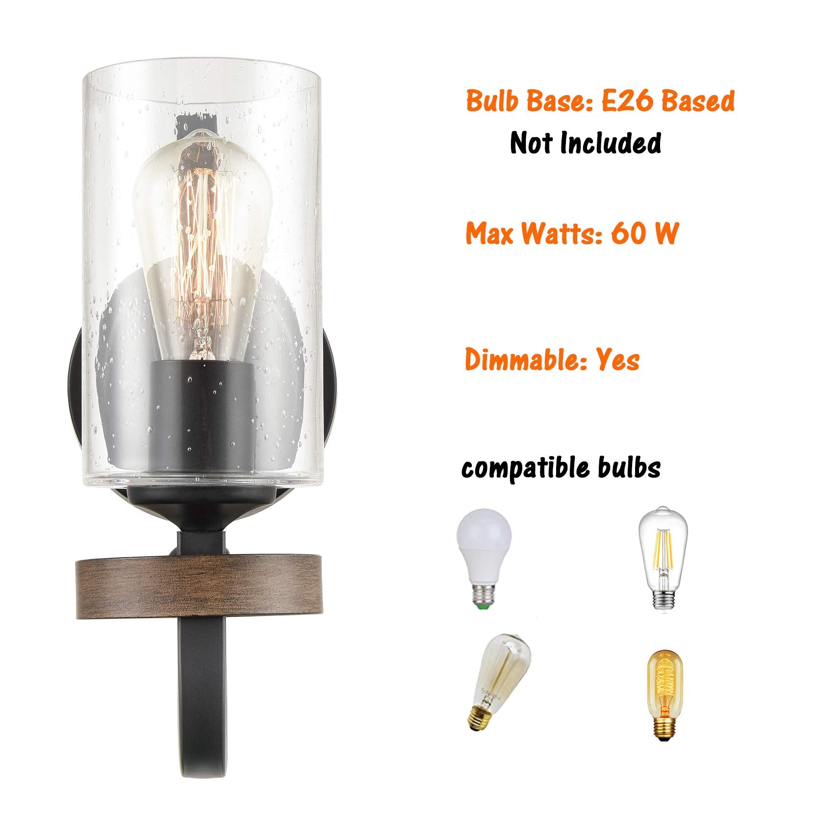 - 【Fitted Bulb】the farmhouse wall sconce features an E26 socket that is compatible with a variety of incandescent, LED, CFL and halogen bulbs (60W max, NOT INCLUDED); fully dimmable if bulbs with compatible dimmer switch