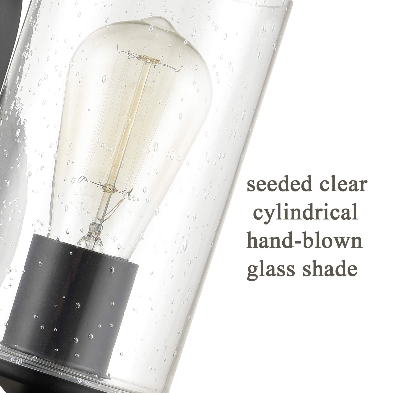 - 【Seeded Cylindrical Shade】 this black vanity light bathroom constructed with seeded glass shade to let the bright light shine