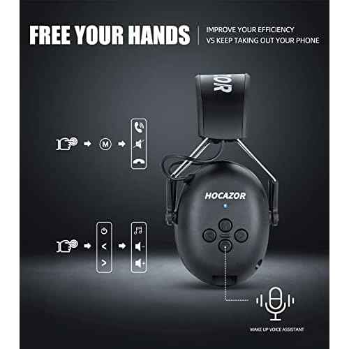HZ07 Upgrade Bluetooth 5.3 Hearing Protection - NRR 25dB Noise Cancelling Earmuffs 40 Hours+ Playing Time with 1500mAh Rechargeable Battery for Mowing, Workshops, Black