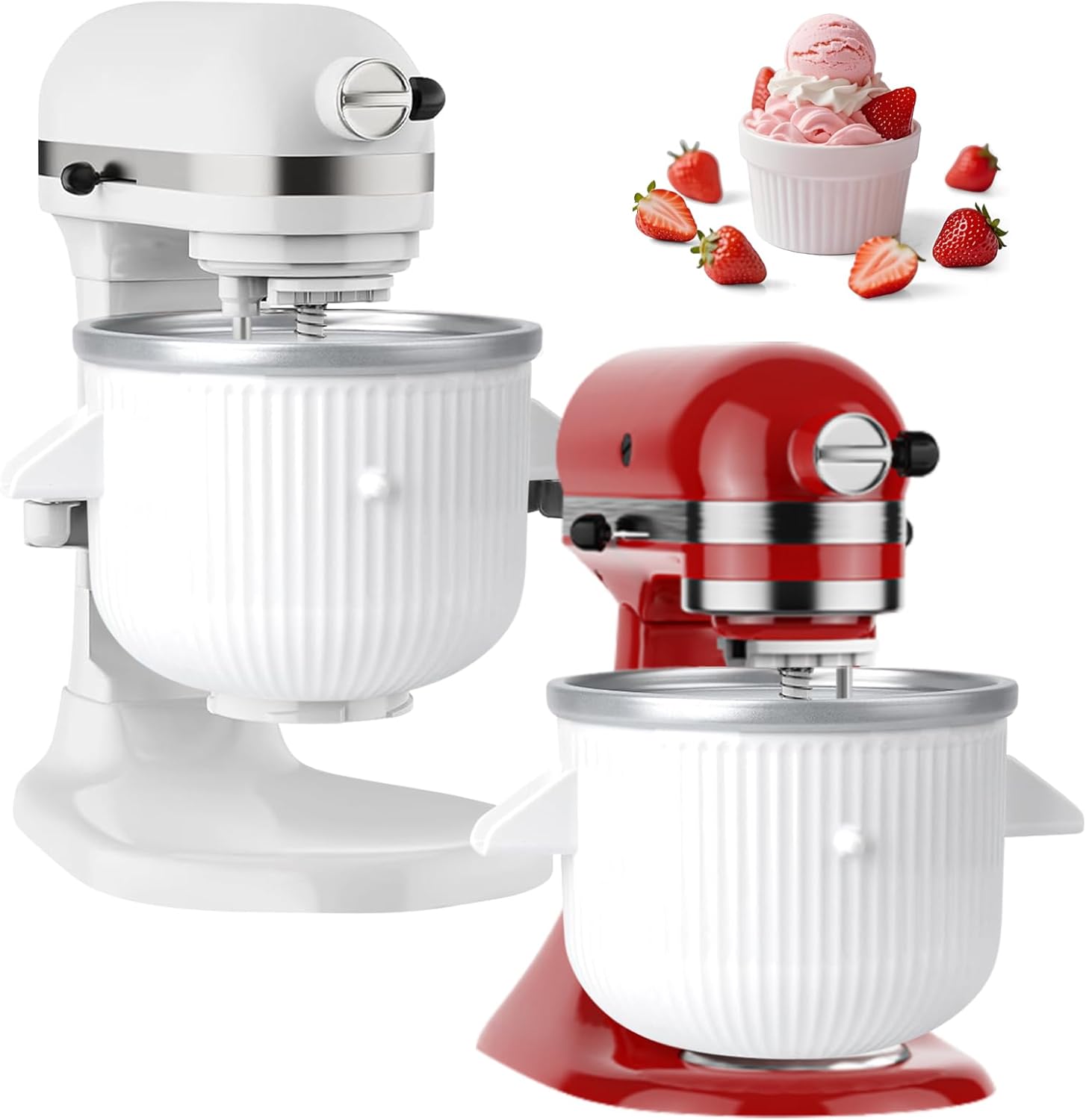 - [ Perfect Compatibility ] Designed for kitchenaid ice cream maker attachment.This ice cream maker attachment works with KitchenAid 4.5QT/5QT tilt-head and 6QT bowl-lift stand mixers, but is not compatible with 3.5QT models or the following 5/5.5/6 Quart bowl-lift mixers: 5KPM5, 5K5, 4KSM5, K5SS, KSM5, KSM50, KSM500, 3KSM5, 9KSM5, and KSM450. Please check your model before ordering.