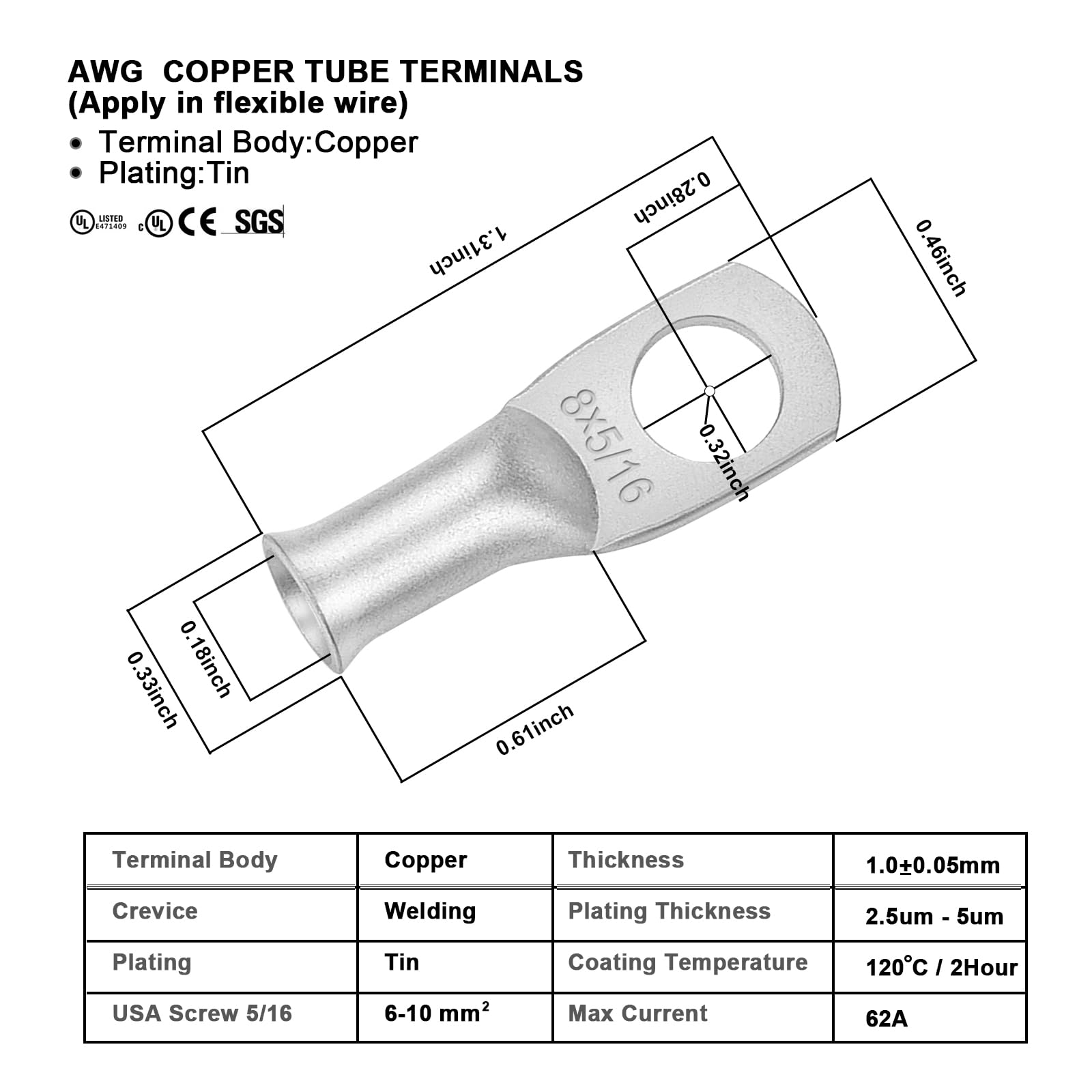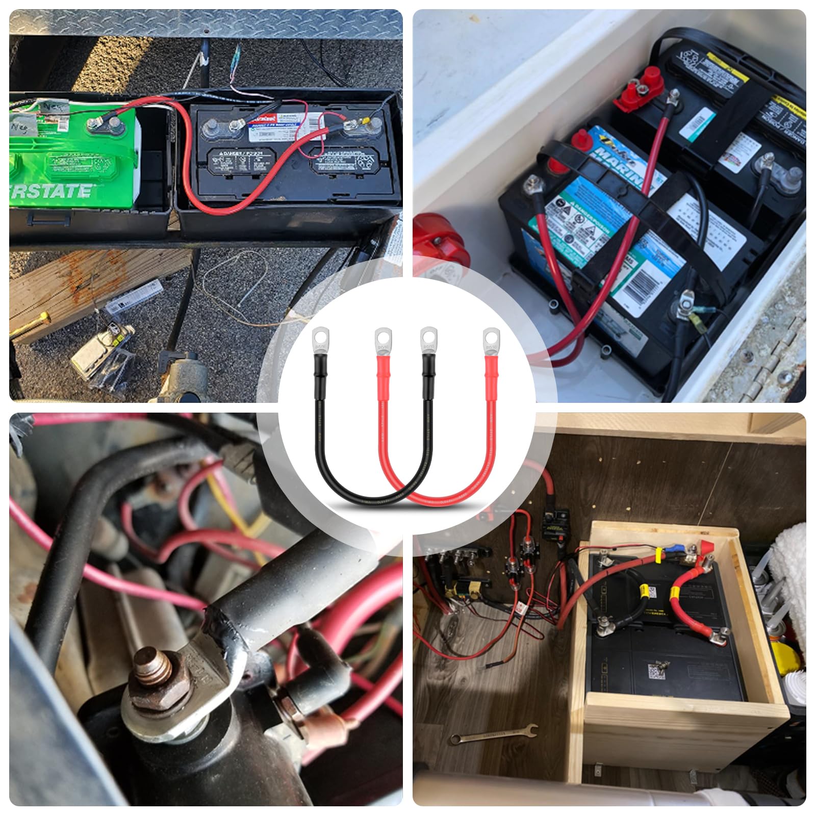 - Each cable has (1) 5/16'' ring terminal (already crimped), allowing it to fit over battery disconnects/switches.
