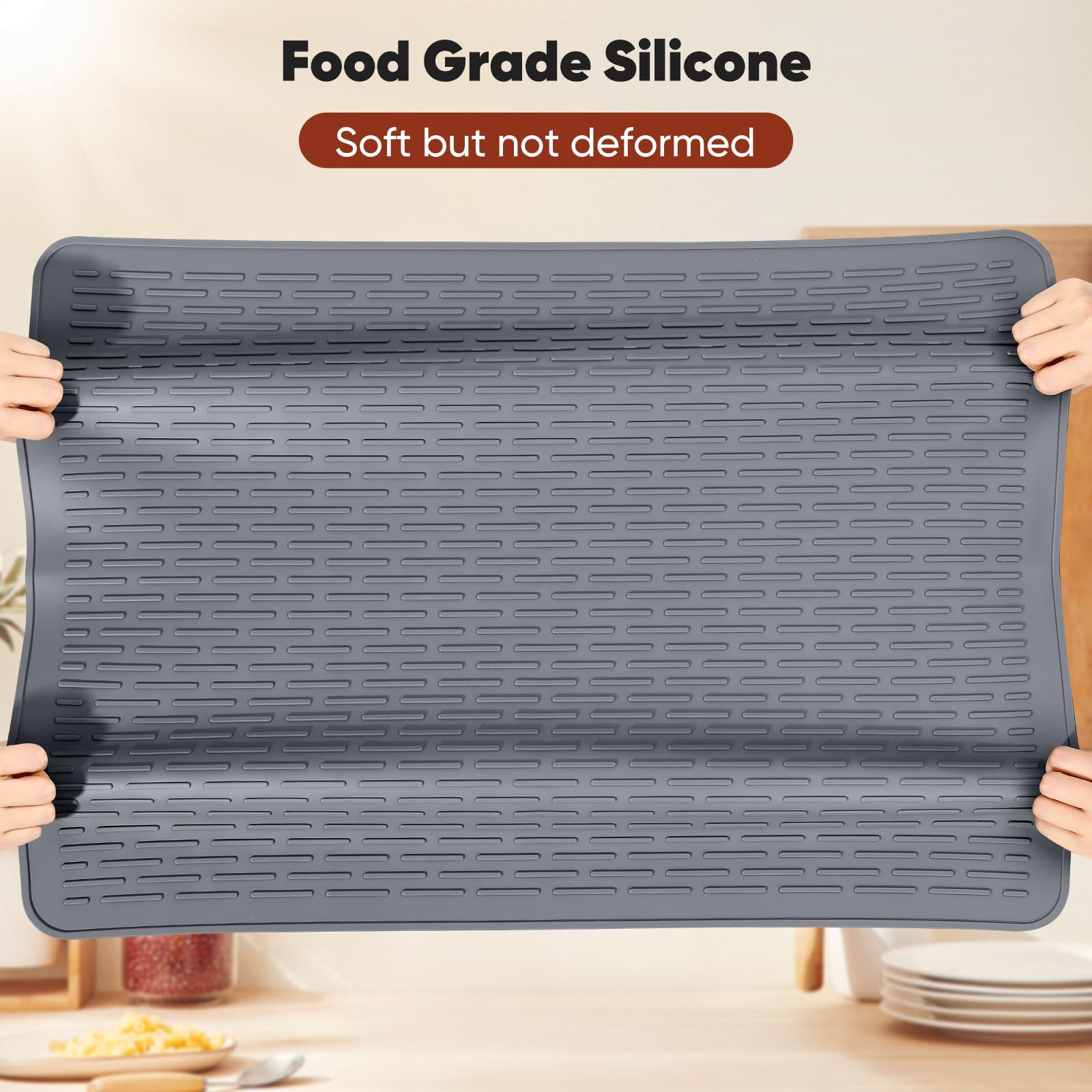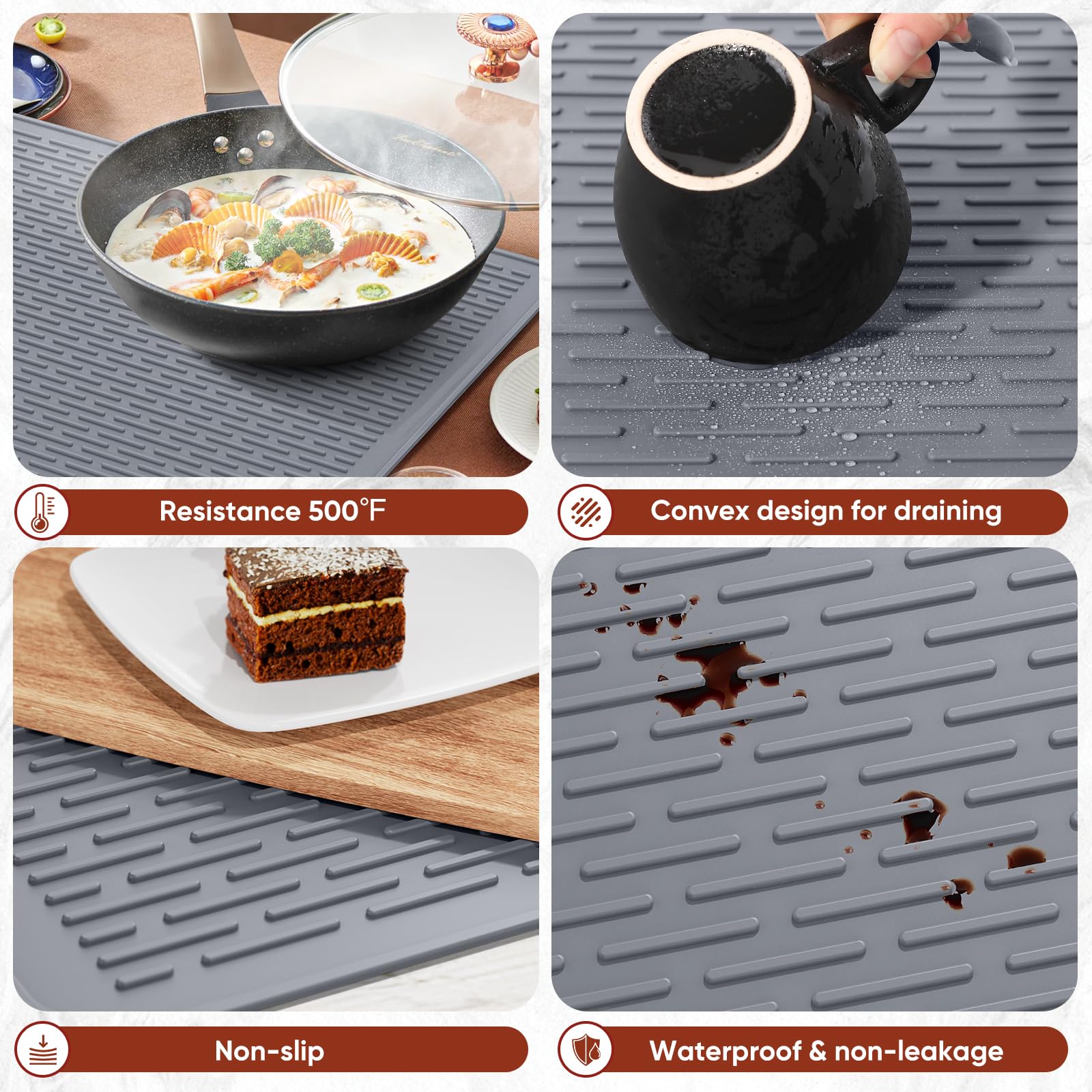IKANFI Stove Top Cover for Electric Stove, Dish Drying Mat for Kitchen, Glass Cooktop Protector, Heat Resistant Waterproof Foldable Anti-Slip Silicone Mat (Gray, 30''L x 21''W)