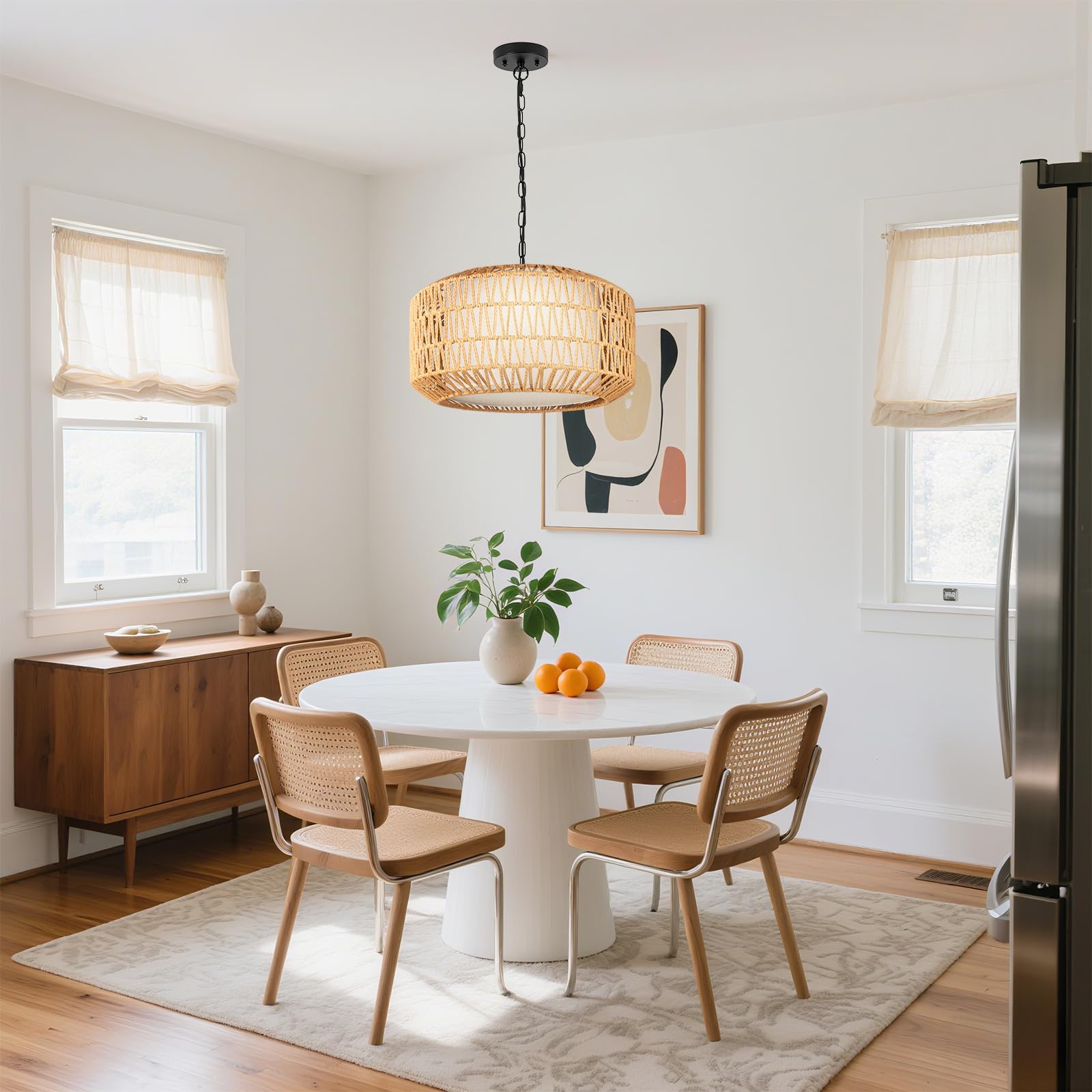 - 【Hand-Woven Rattan Design】Crafted with natural rattan by skilled artisans, this chandelier brings a touch of bohemian and farmhouse charm to your home décor.