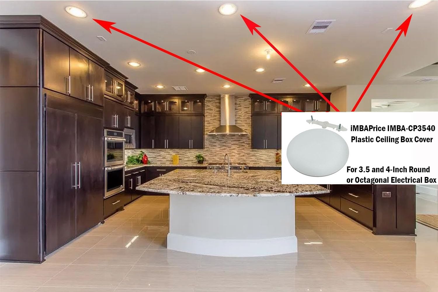 Details: The iMBAPrice IMBA-CP3540-2 Ceiling Box Cover Plate offers a simple, clean solution for concealing unused electrical boxes in ceilings and walls. Designed to fit 3-1/2" and 4" round or octagon boxes, it provides a professional, code-compliant finish for any room. Constructed from durable, non-metallic plastic, this cover resists rust, corrosion, and damage over time. The hidden screw design creates a flush, smooth surface, while the textured white finish can be painted to match your interior décor. Perfect for contractors, electricians, and DIY homeowners, this 2-pack provides everything needed for a tidy installation in multiple rooms or smaller projects.