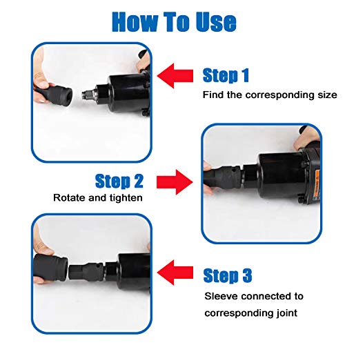 - Product Size:This set includes a wide array of adapters and reducers. It will add great versatility by including the following conversions and sizes 3/8" to 1/4" reducer, 1/2" to 3/8" reducer, 1/4" to 3/8" adapter, 3/8" to 1/2" adapter
