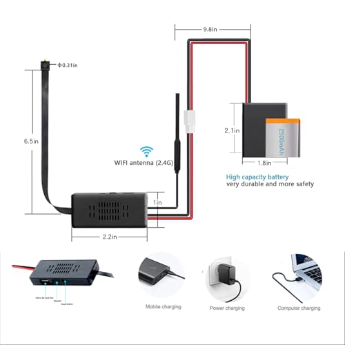 - 2500 mAh Battery: Powered by a long-lasting 2500 mAh battery, this mini camera operates continuously for up to 7 hours. It also supports recording while charging, so battery life is never a concern.