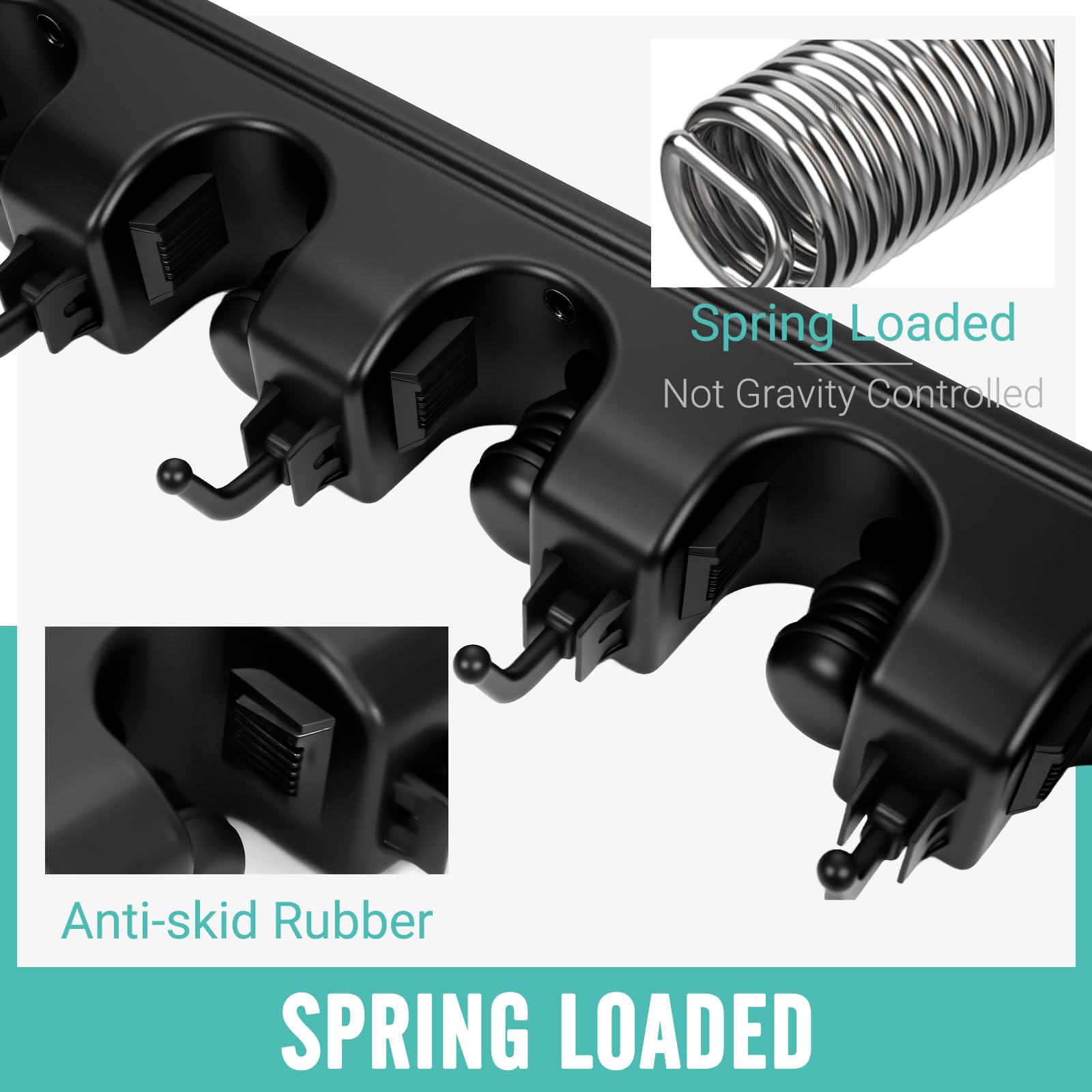 - Secure and Slip-Resistant: The 5 spring-loaded slots with anti-skid rubber grips securely hold long-handled tools like brooms and shovels, preventing them from falling out
