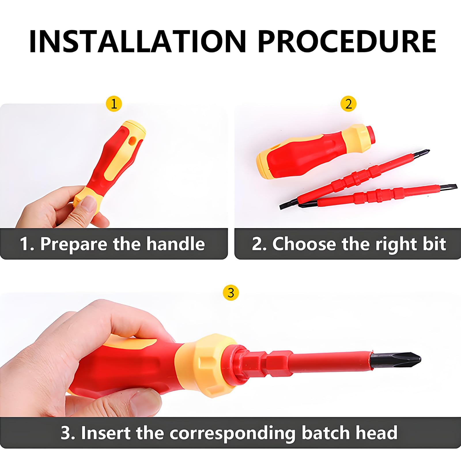 - 【Design】The screwdriver and handle are also insulated. The ergonomic handle helps you use it easily, ensures maximum grip and comfort during long-term use, and prevents the screwdriver from slipping.