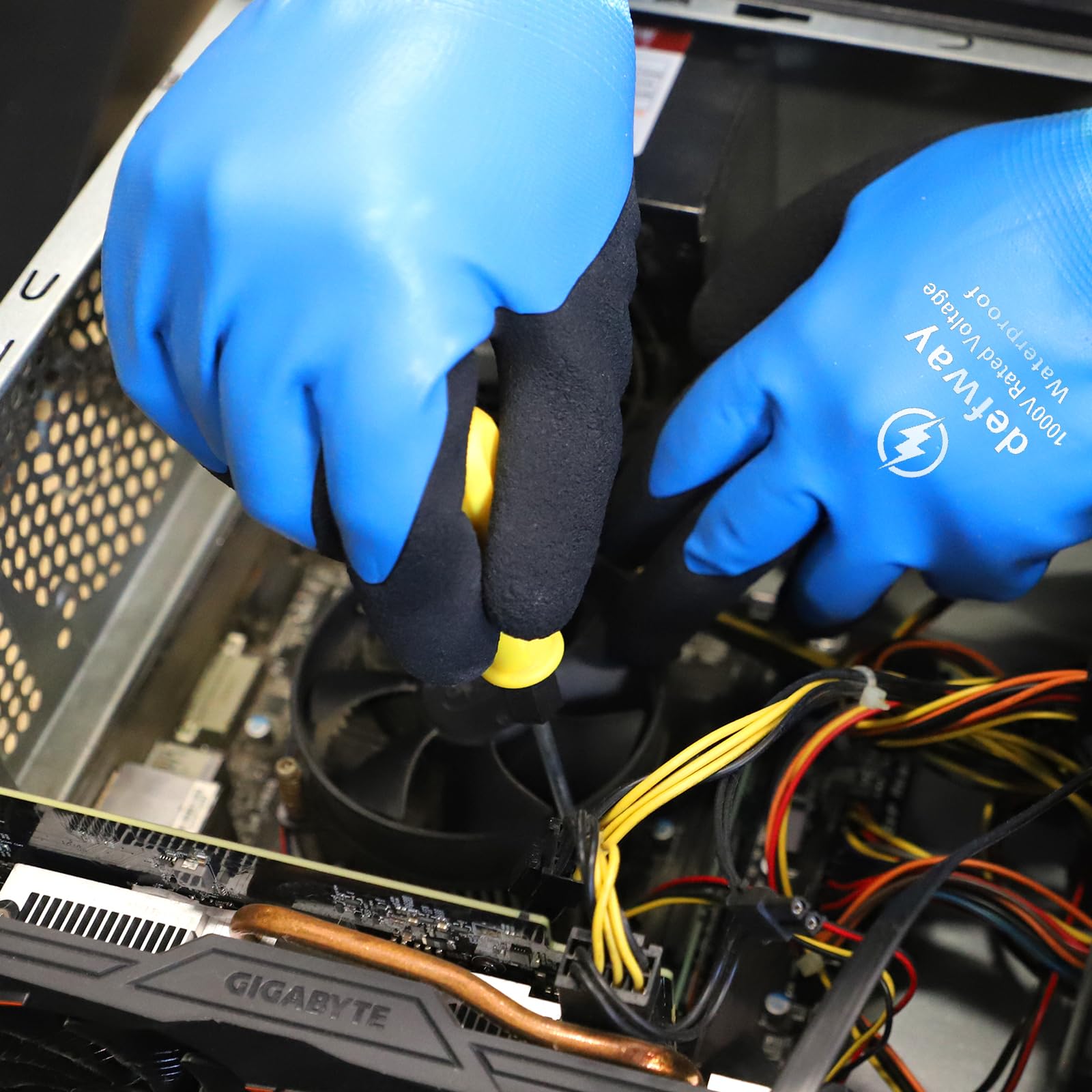 - EXCELLENT 1000V INSULATION: These insulated work gloves have been rigorously tested to withstand voltages up to 1000V, providing you with reliable insulation protection when handling electrical equipment, effectively blocking the current and greatly reducing the risk of electric shock, making your operations safer and more secure. And we will also give you an extra roll of insulating tape.