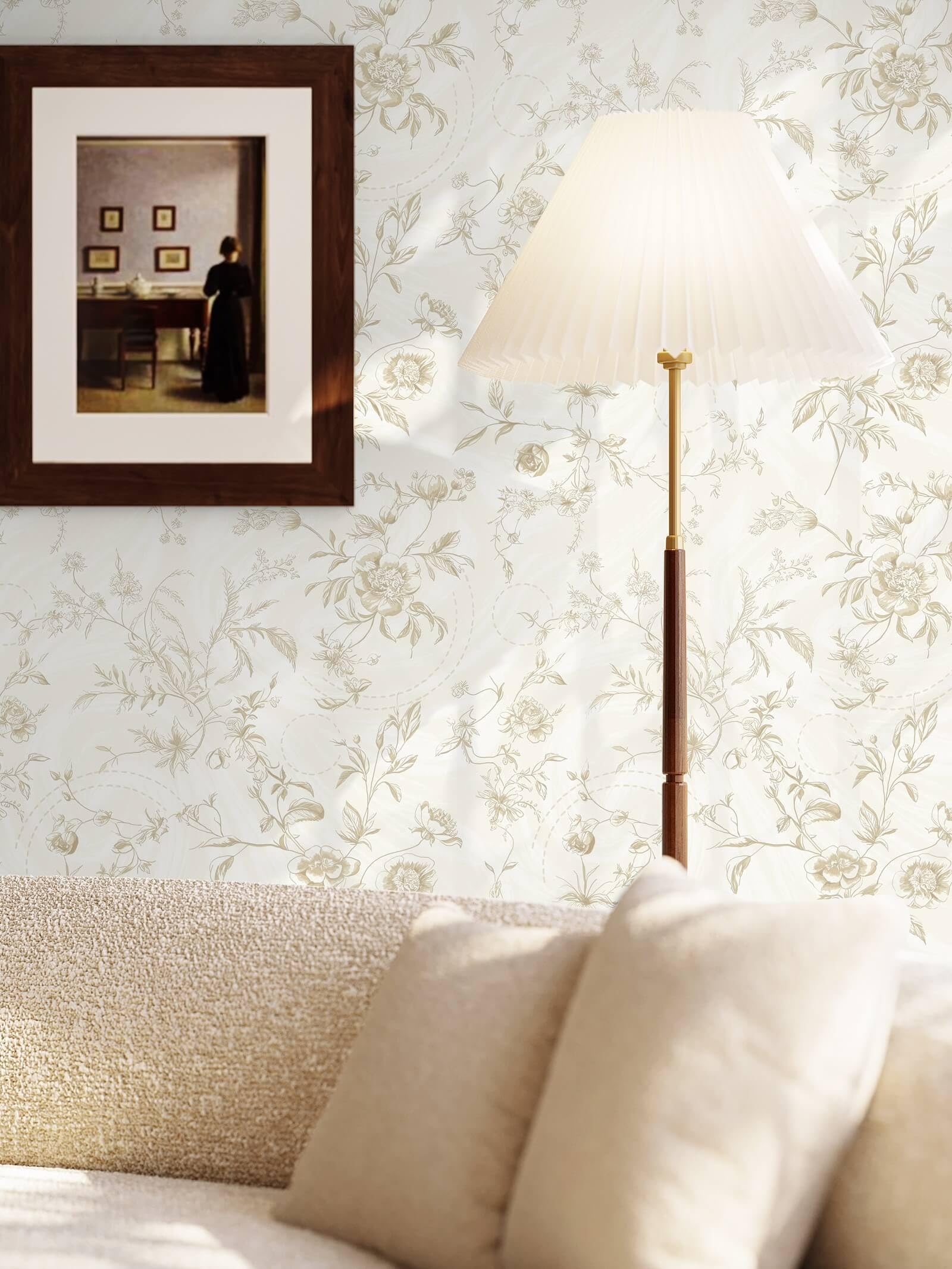 - Design: Inspired by French gardens, exuding elegance and romance, a soft beige background features light brown floral branches and leaves in a scattered, natural arrangement. Delicate brushstrokes form varied floral patterns, while the harmonious color scheme captures the romantic essence of a French garden, bringing warmth and an inviting atmosphere into your home