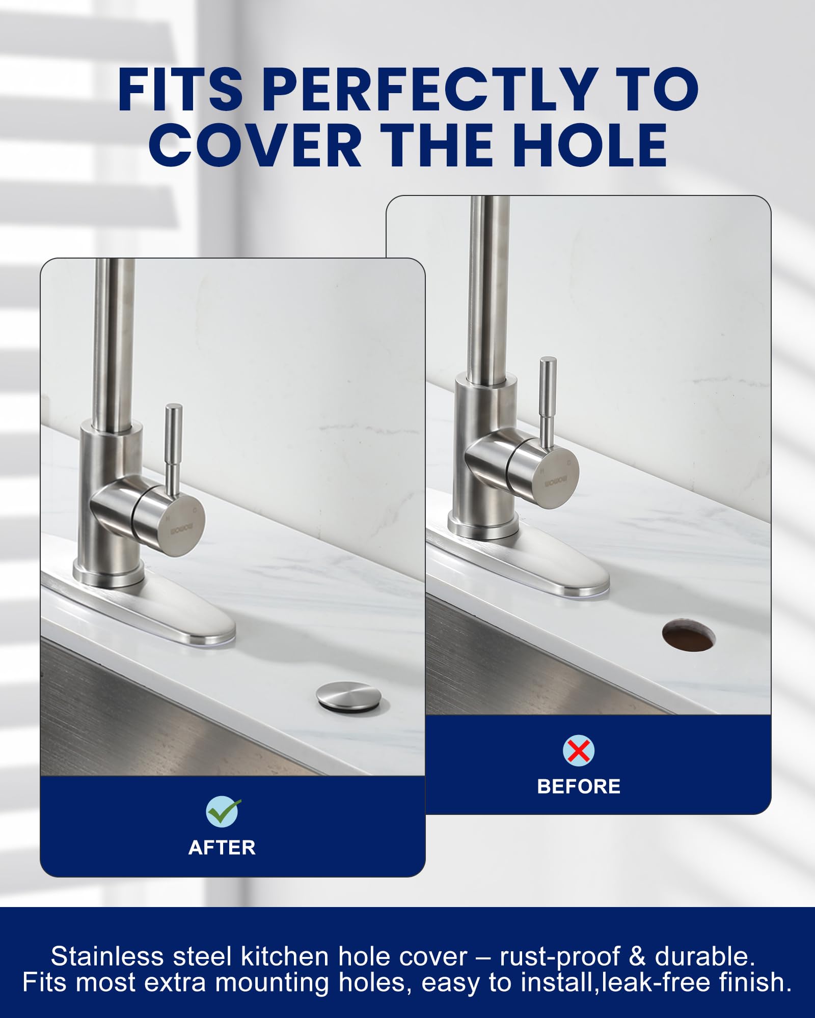 - 【Rust-Proof Sink Cover】Designed for lasting performance, our faucet hole cover features a rust-proof stainless steel surface and hickened plastic body—so you’ll never worry about rusting or tarnishing.Effectively prevents water buildup while keeping your sink area clean and hygienic.