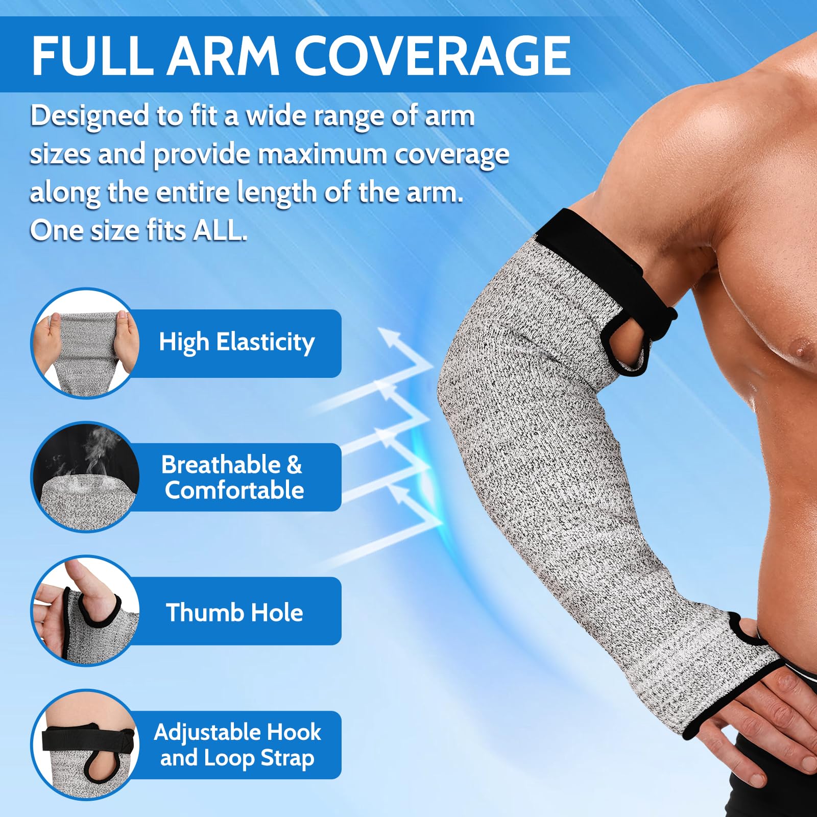 - High-Risk Cut Protection: These protective arm sleeves are made from premium high-performance polyethylene (HPPE), providing superior A6 cut resistance, anti-slash, and heat-resistant properties, ensuring safety during various tasks like gardening, pet grooming, and cooking.