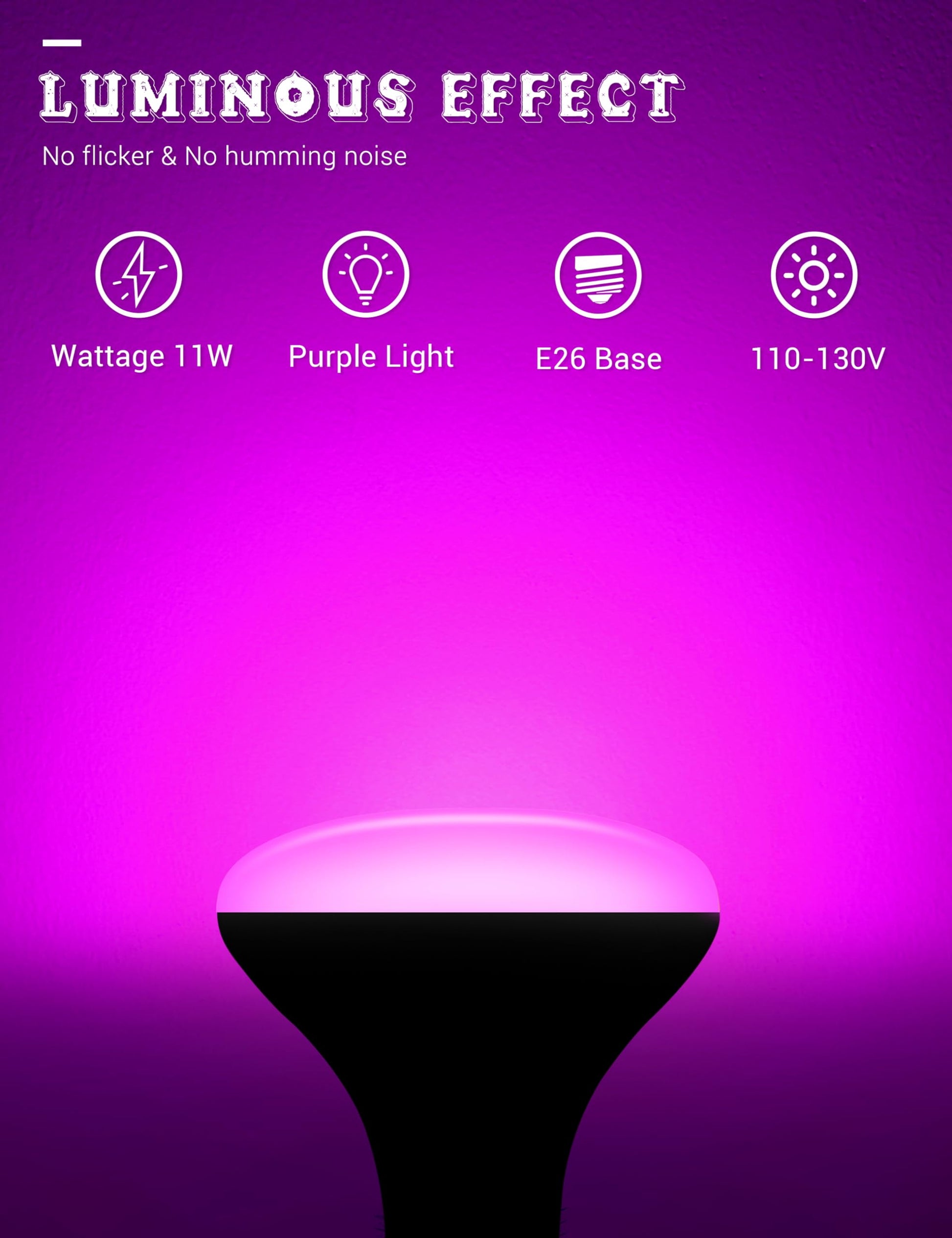 - Safety & Durable: Made with a durable design, our BR30 orange and purple light bulb meets outstanding quality and has long lifespan. No worry of short circuits,make it a safer choice for indoor Halloween decoration.