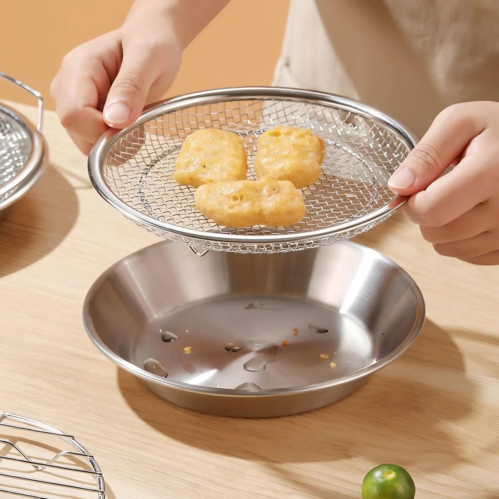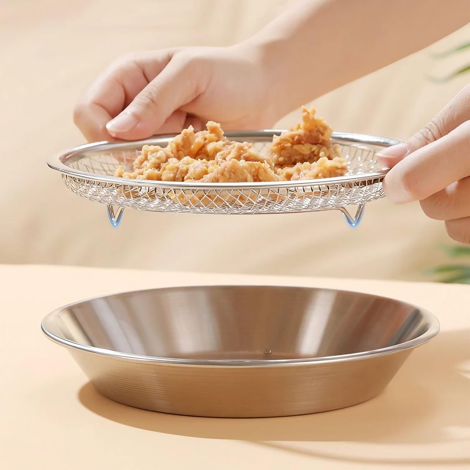JANKOW Air Fryer Rack Round Stainless Steel Basket, Oil Strainer Basket, Round Stackable Grill, Deep Fryer Basket for Air Fryer Accessories in the Kitchen (Gold) (Silver)