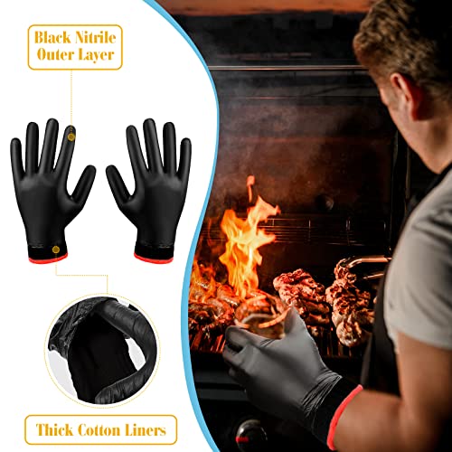 Janmercy 200 Pcs Disposable BBQ Nitrile Gloves with 4 Pairs Cotton Liners Grilling Cooking Cleaning Gloves for Smoker Meat(X-Large,Black)