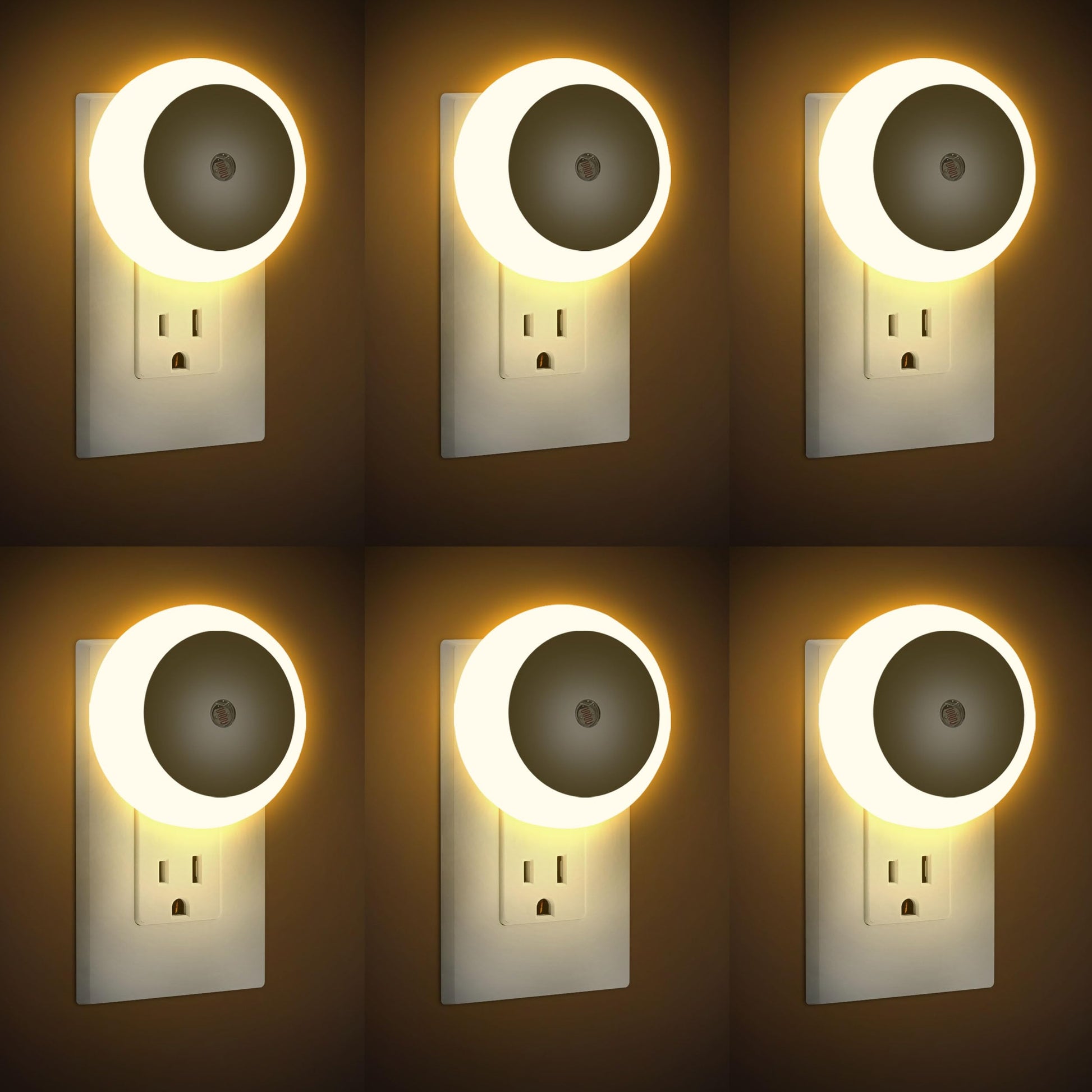 Jedqlnye LED Night Lights Plug into Wall 6 Packs,Dusk-to-Dawn Light Sensor with Automatically Turn on and Off Wall Night Light for Bedroom,Bathroom,Stairs,Corridor (Warm White, Round-6pack)