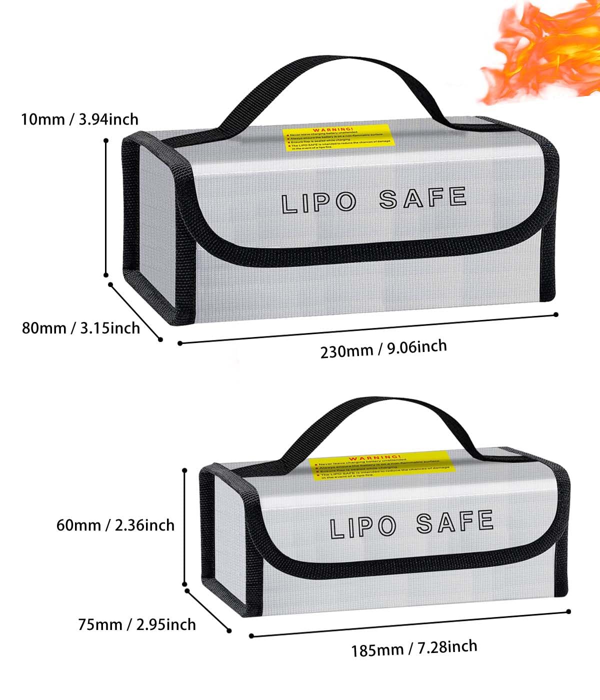 Details: 2PCS Lipo Battery Safe Bag Fireproof Explosionproof Bag for Lipo Battery Storage Charging Transport,Home Office Travel Battery Safe Storage Pouch 230*80*100mm +185*75*60mm