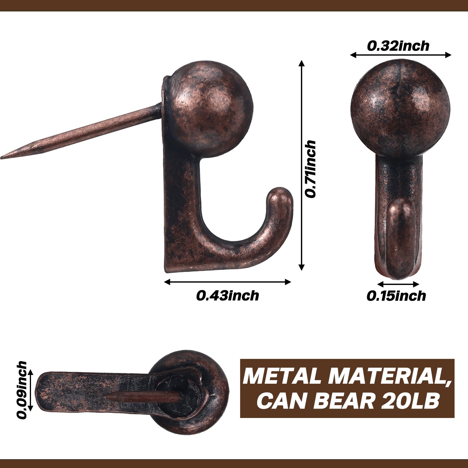 Jetec 30 Pieces Metal Push Pin Hangers Pin Wall Hooks Picture Hanging Picture Nails Frame Oil Painting Hooks on Wooden or Fabric Wall for Home or Office (Bronze)