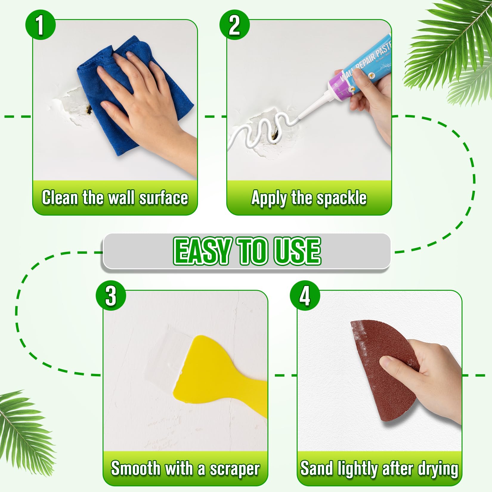 - Quick & Easy to Use: Apply the spackle to the damaged area and smooth it with the scraper. The wall repair paste dries fast, making wall repairs simple and efficient