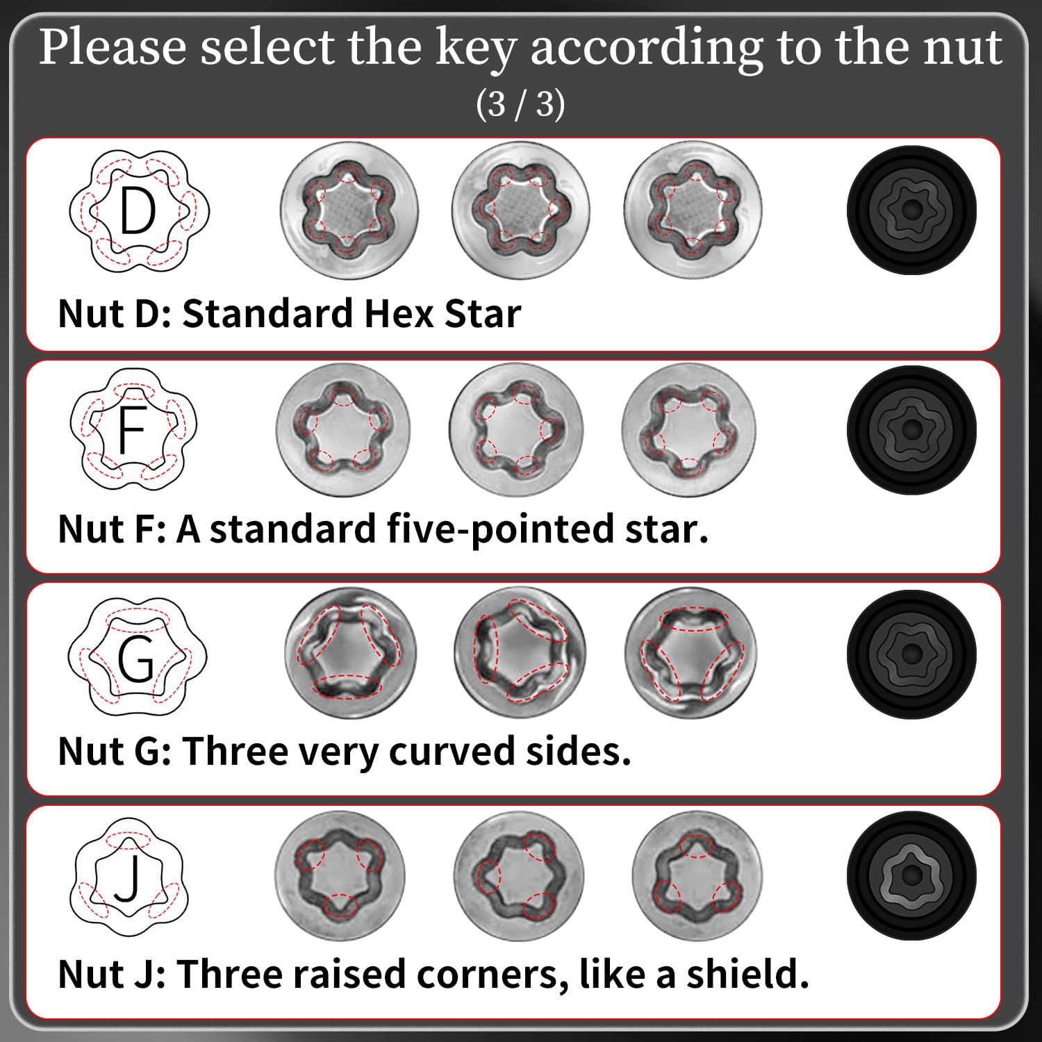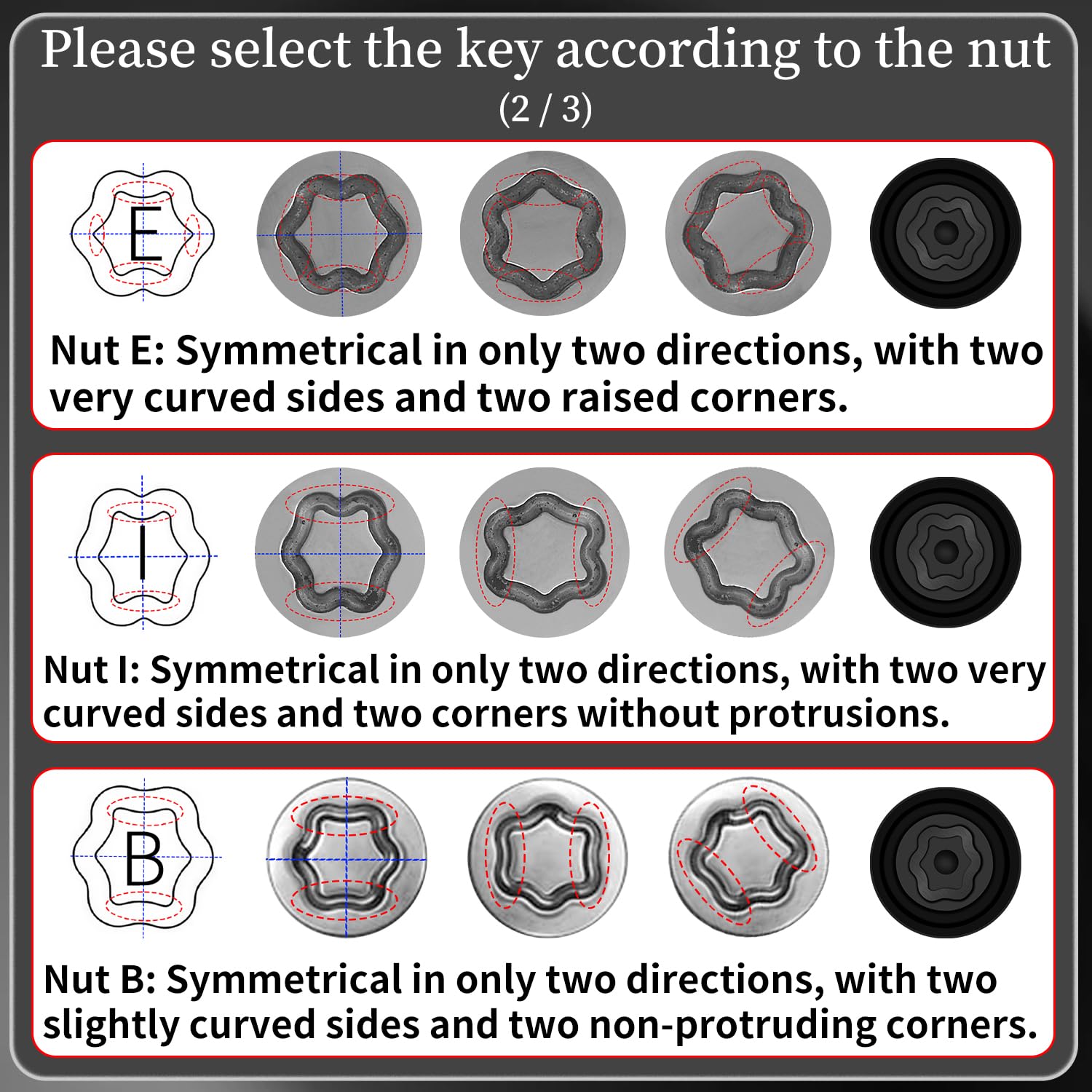 - Please Check Compatibility: Since the type of locking nut for a car is not based on the model and year, it is not possible to determine compatibility based on the model and year. Please carefully compare the socket outline in the picture with the nut outline of your car to see if it matches.