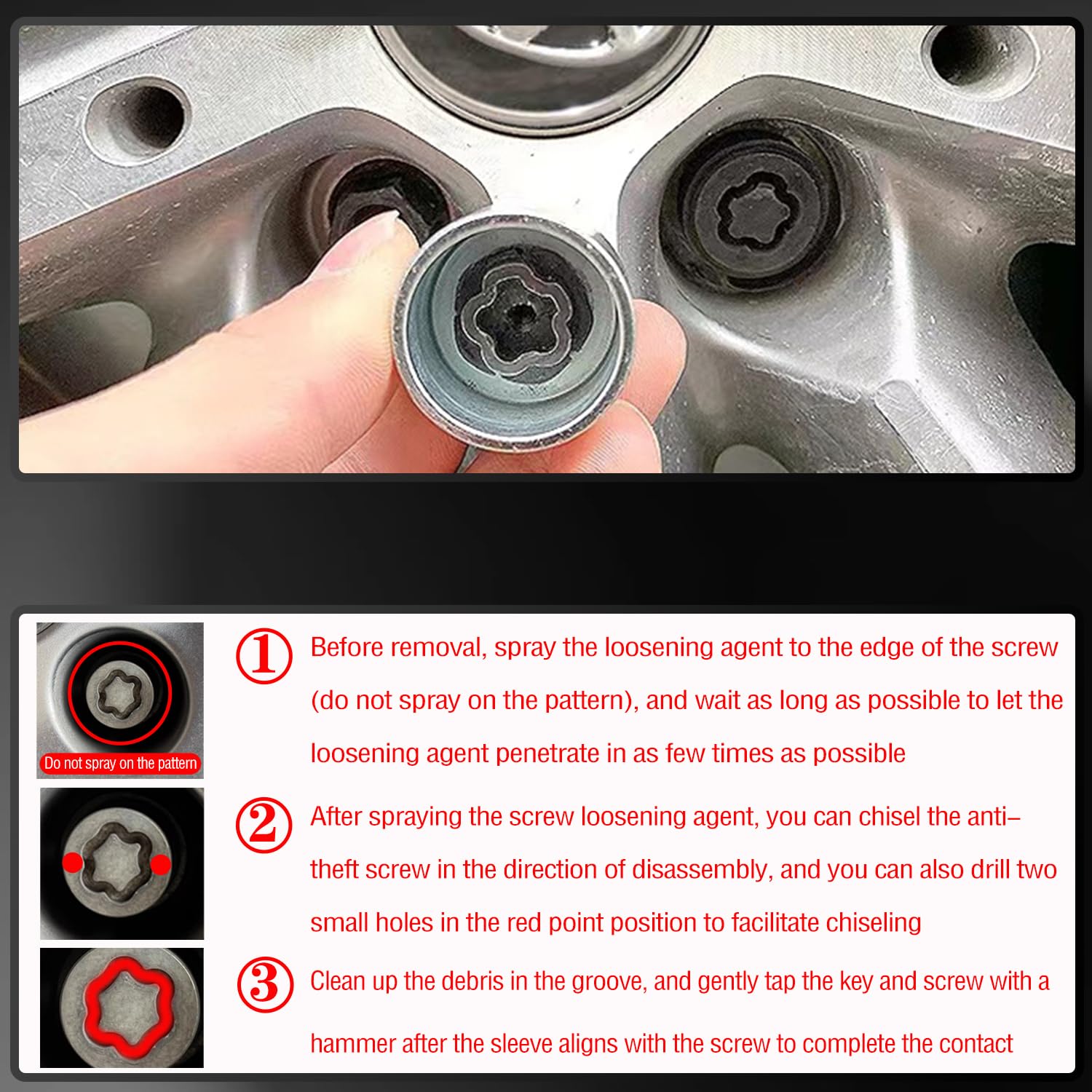 - Socket Tool: The Wheel Lock Nut Key is compatible with Toyota models and is used to remove and install wheel anti-theft nuts. Please carefully check whether the thread on the product picture is consistent with the thread on your car tire before purchasing.