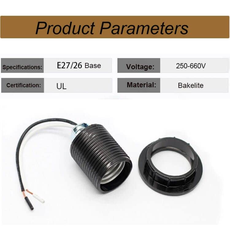 - Lamp holder Type:E26 Phenolic Socket with ring and 6 inch length wire