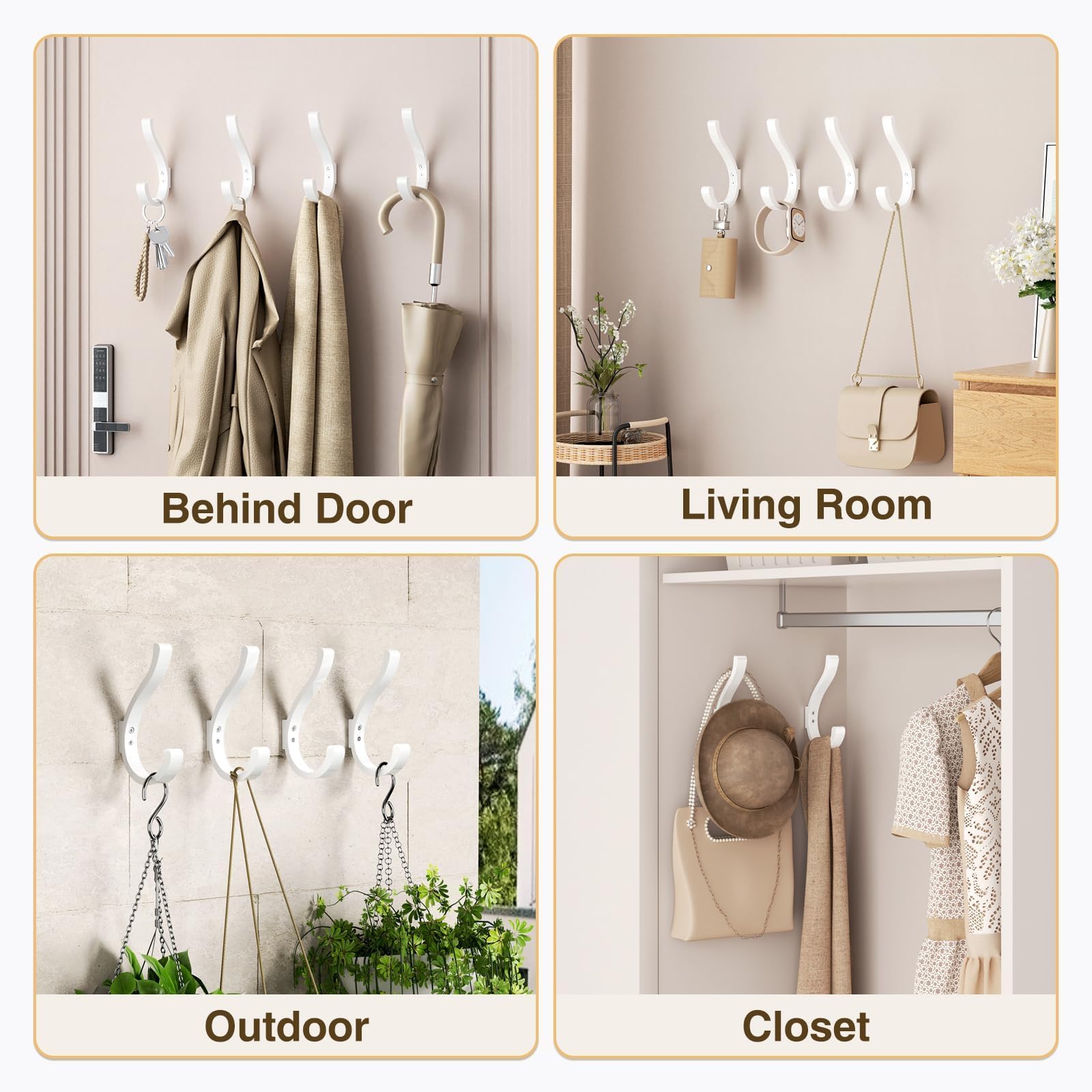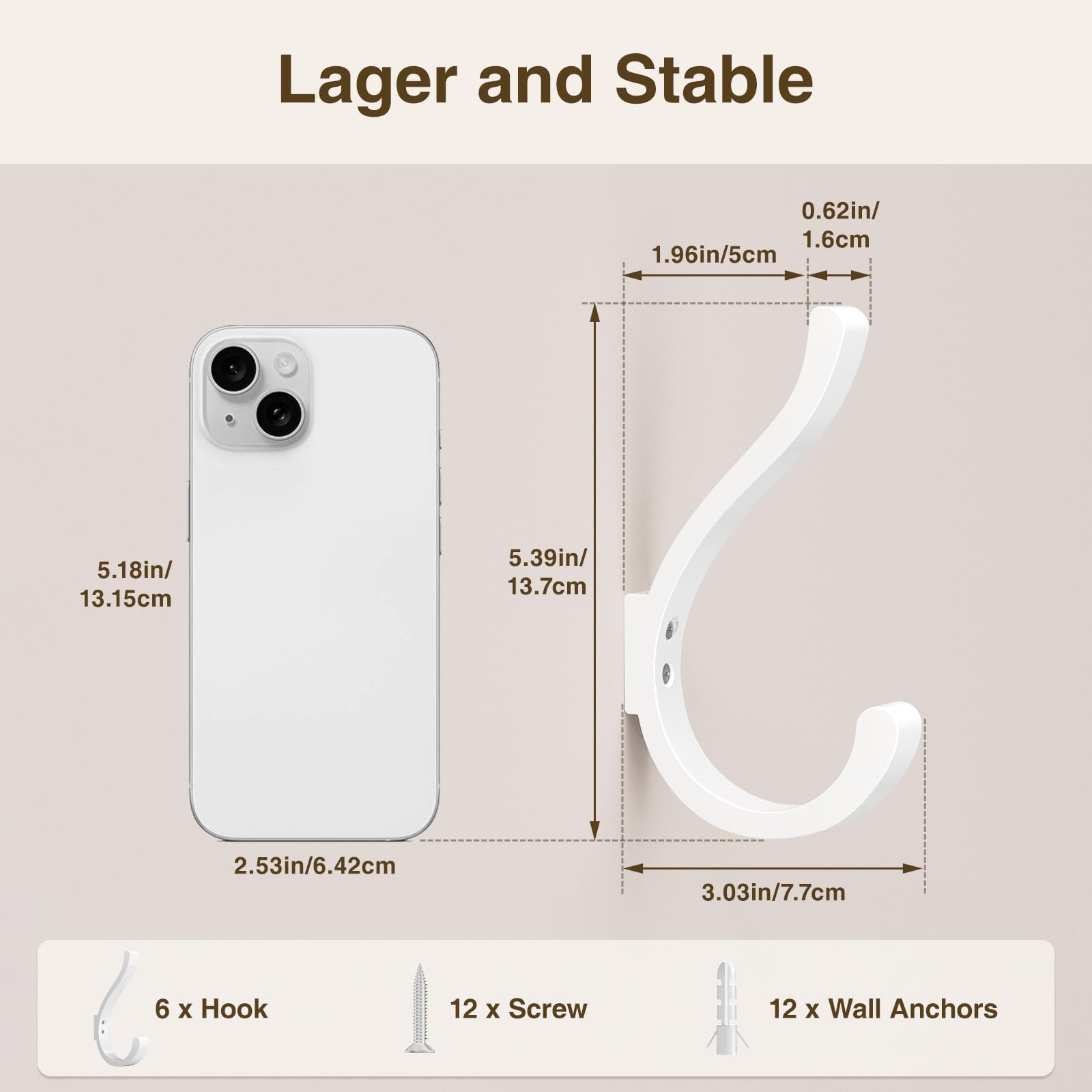 jockcaras Wall Hooks for Hanging Coat/Backpack - 5.4'' Large 40LBS Heavy Duty Hanger Wall Mount Screw in, for Towel, Closet, Robe, Bag, Outdoor, White 6 Pack