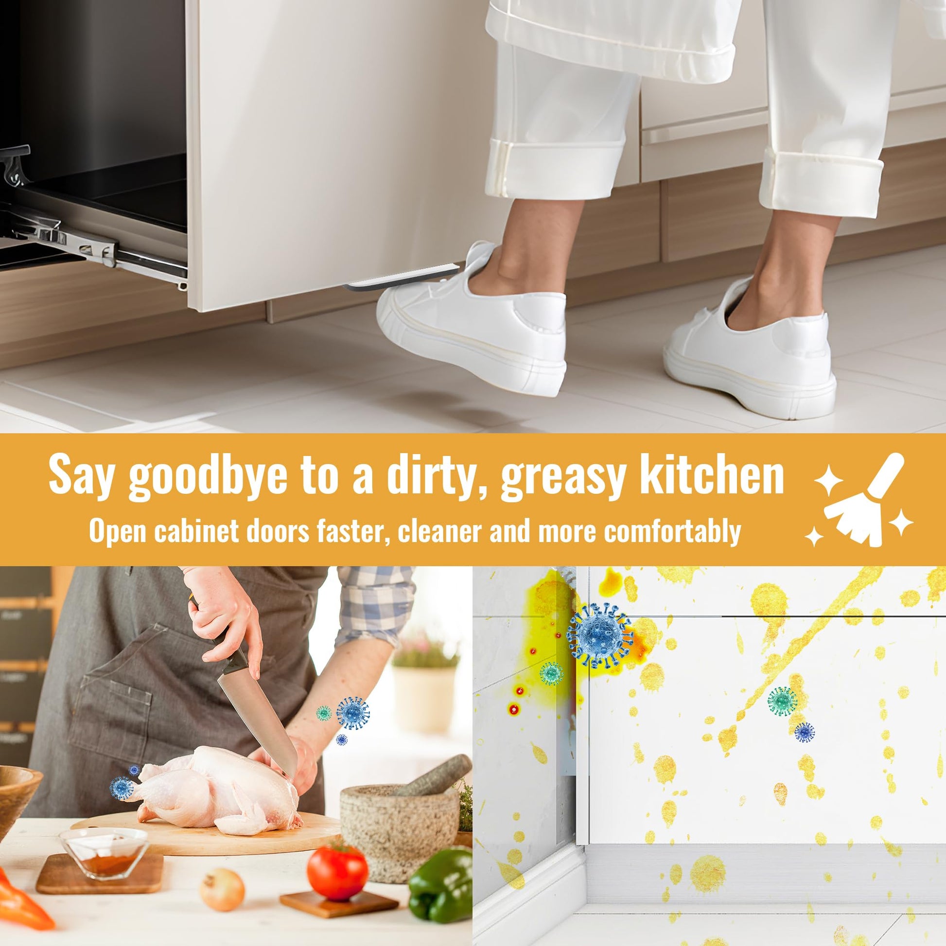 - Hands Free Cabinet Door Solution: When your hands are dirty in the kitchen or you are holding something and it is inconvenient to open the door, Joxodak Cabinet Foot Pull allows you to easily open the cabinet with your feet to prevent the cabinet door from being damaged by oil, food, and water