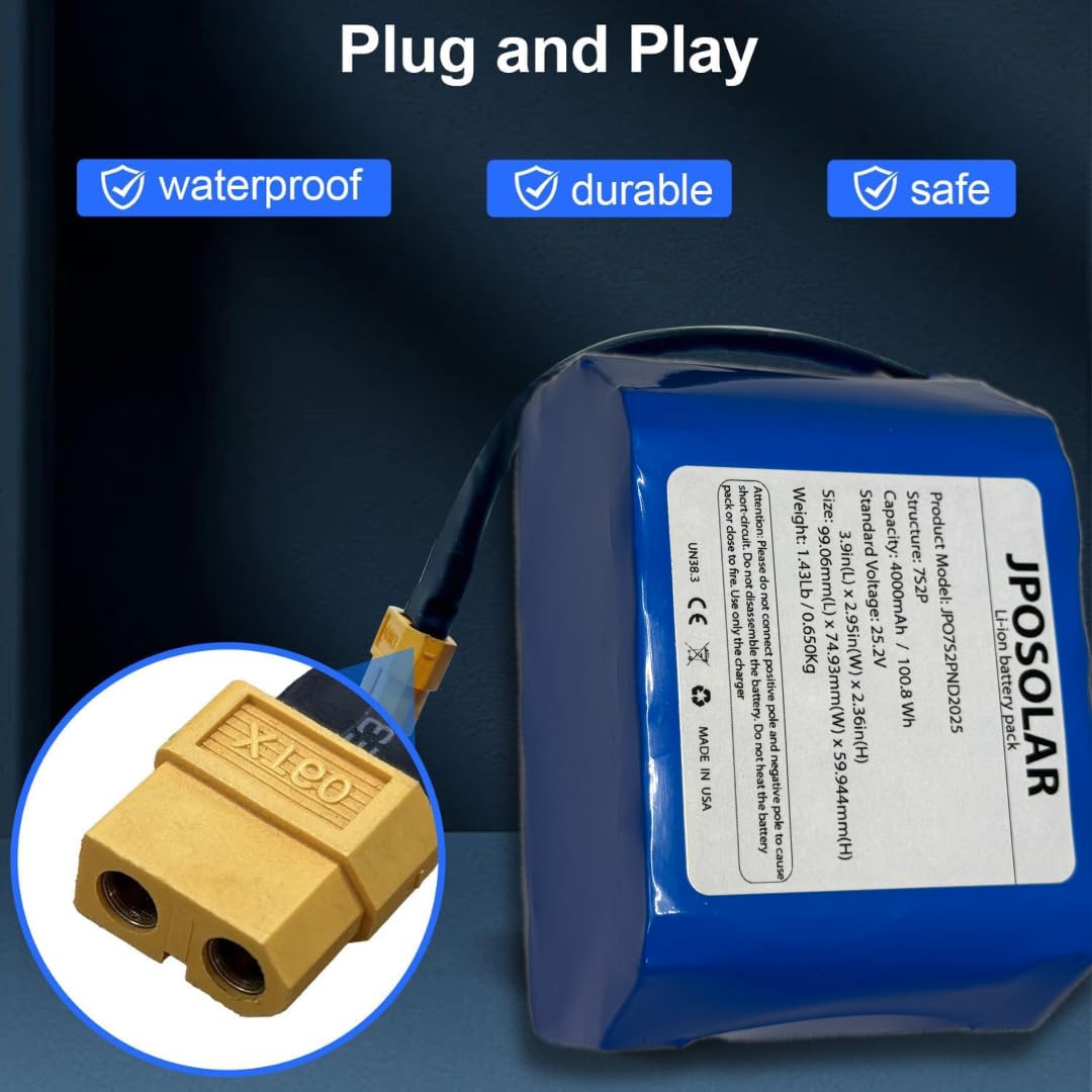 JPOSolar 18650 Lithium-ion Battery Pack 25.2V 4Ah 7S2P/100.8Wh Rechargeable Battery with XT60 Plug. The Battery can be Used in Any Device That Supports The Battery Specifications.