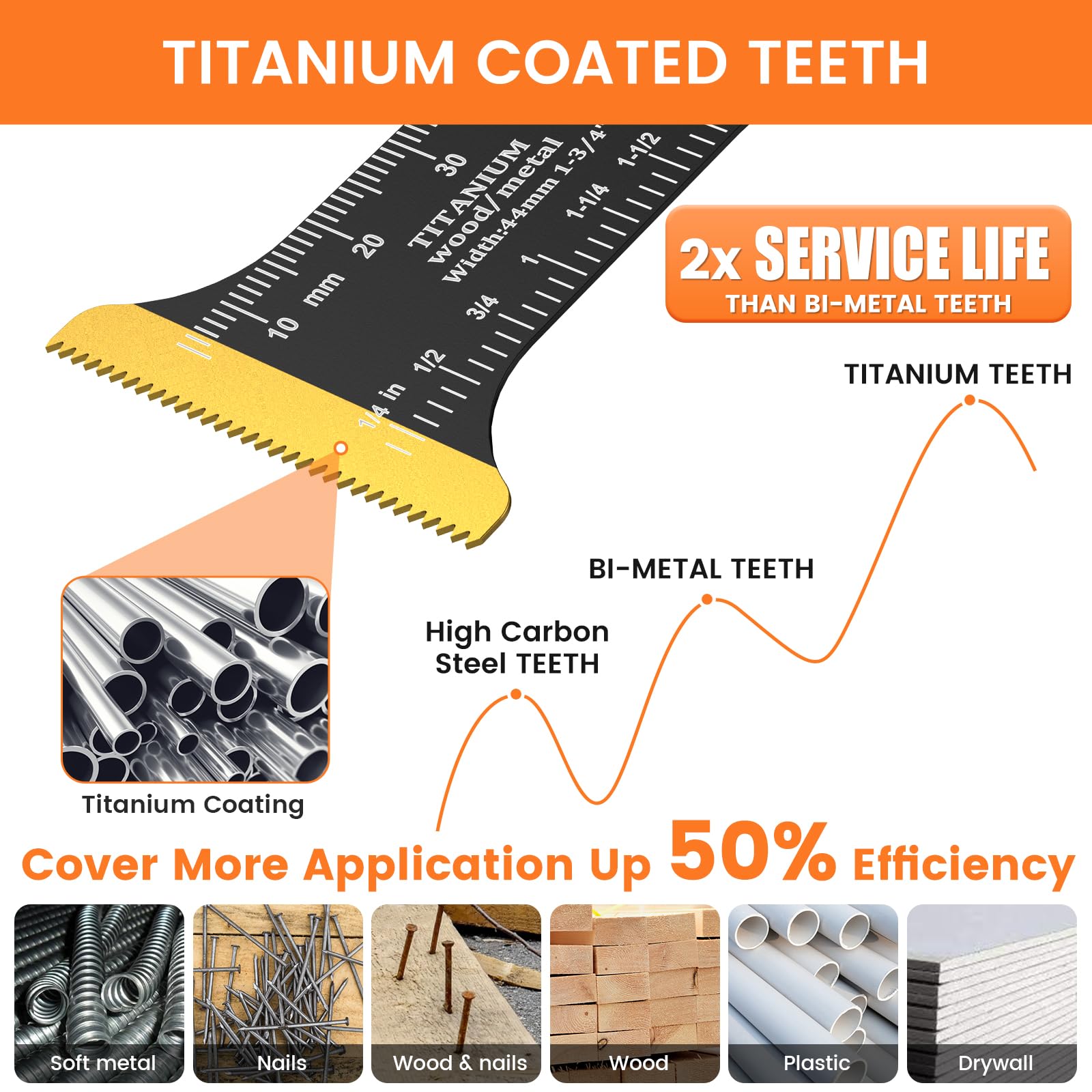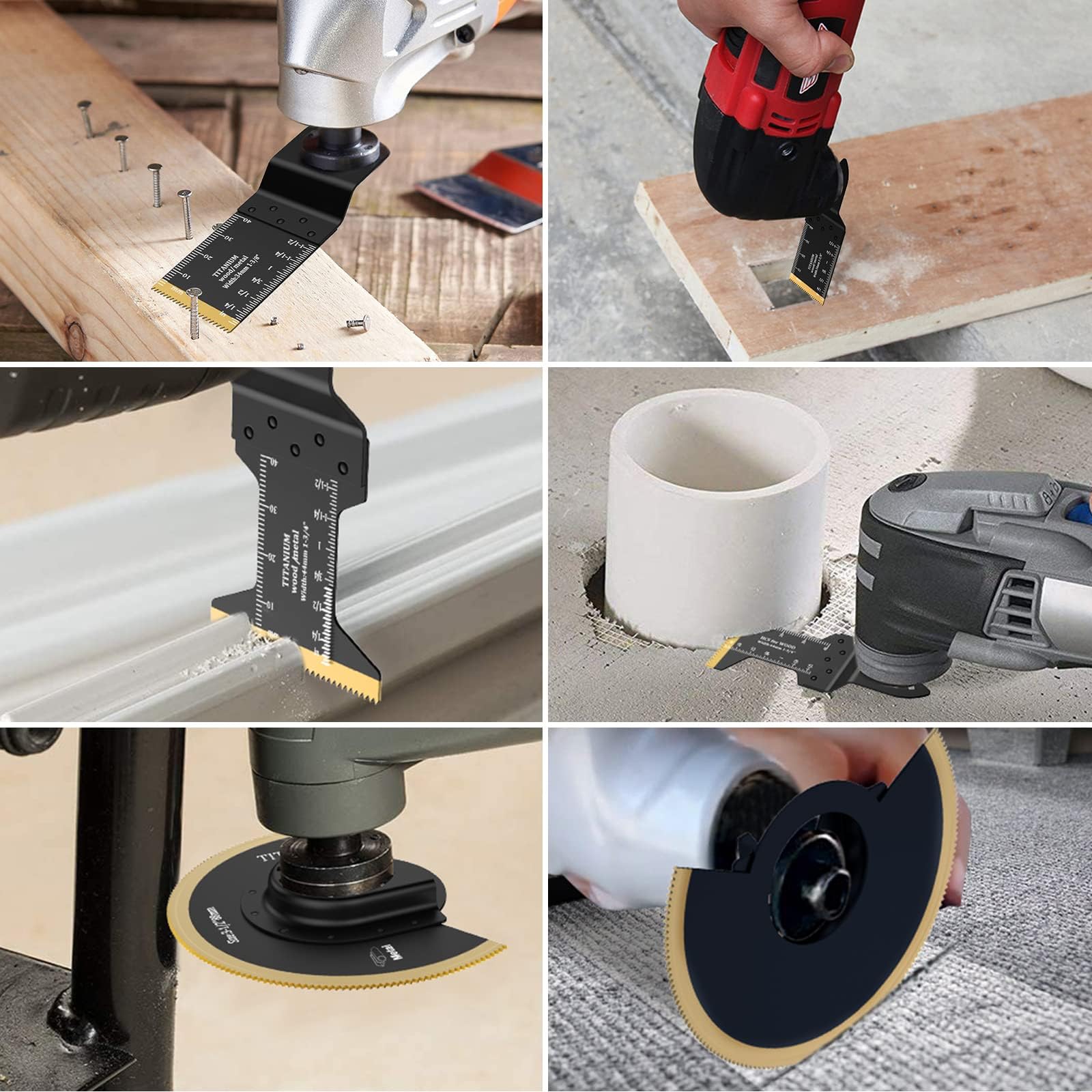 - Widely Application: Titanium plated oscillating blades can be used for building branches, house decoration, door frame floor cutting, metal cutting, and plastic cutting to meet your various cutting needs
