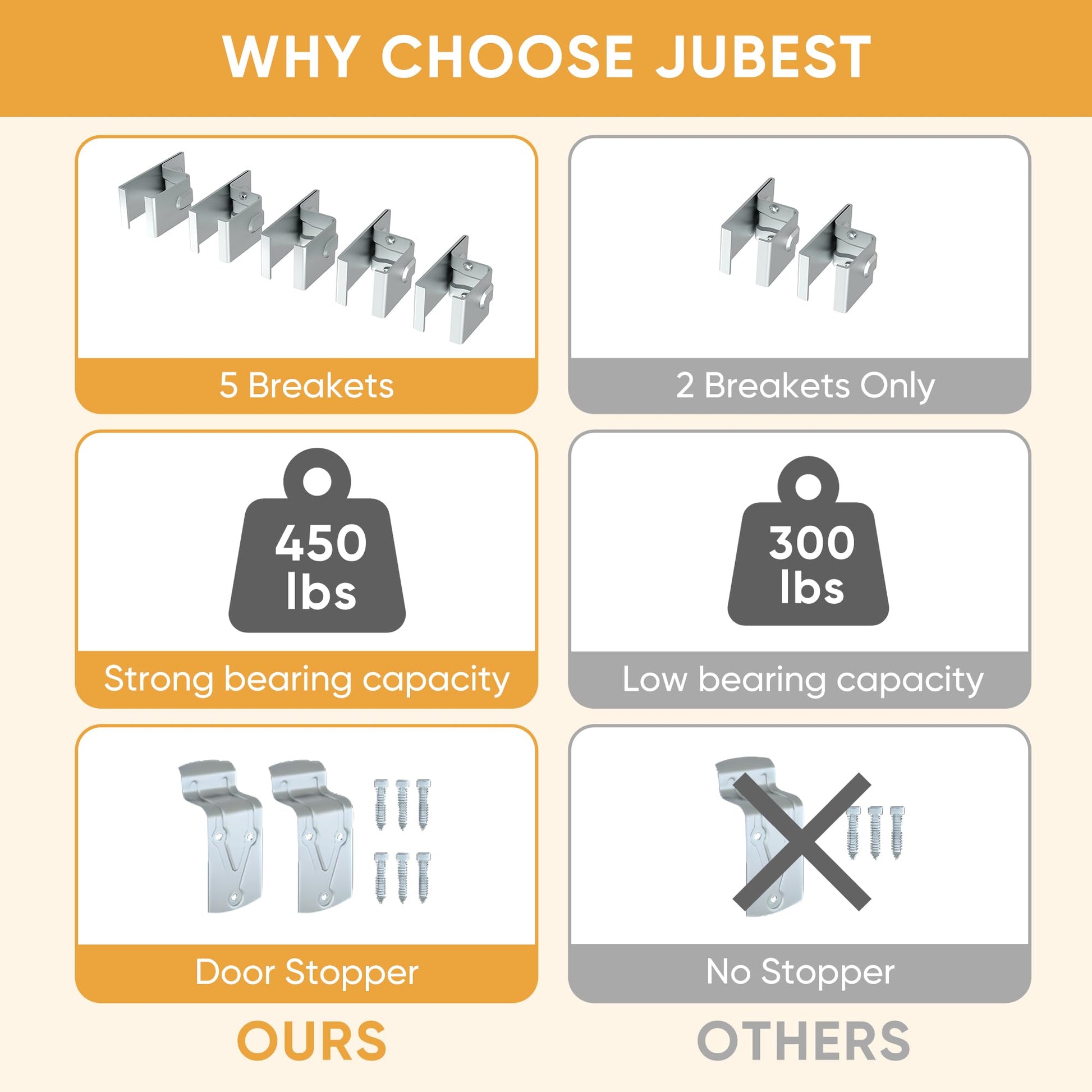 - Heavy Structure: Engineered with industrial-grade roll-formed galvanized steel, our sliding barn door hardware passed 50,000+ cycles text. Holds doors up to 450lbs. Supports door panels 1-3/8" to 1-3/4" thick, making the barn door hardware kit ideal for exterior barn door applications. Corrosion-resistant galvanized coating ensures durability in harsh outdoor conditions while maintaining metallic luster for years.